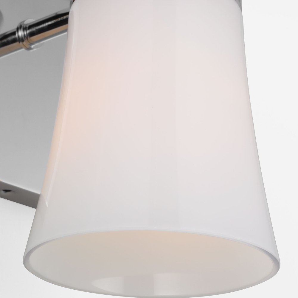 Made to coordinate across a broader range of bath hardware and design styles, this light breathes new life to its traditional shape with milk glass shades and striking, modern finishes