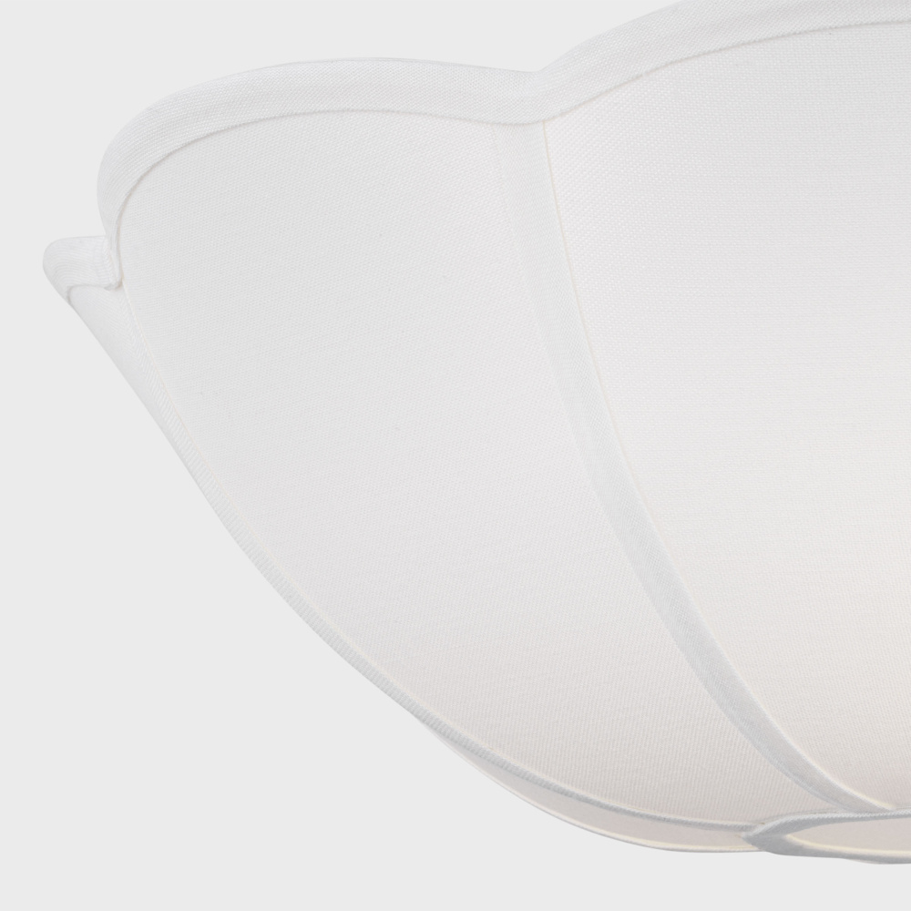 Reminiscent of a spring tulip, the Stassi series by Alexa Hampton updates Art Nouveau inspiration with a modern aesthetic. The scalloped basket silhouette is completed by the contrast of metal chain and white linen. The chandelier will create a harmonious statement hanging in a living room, dining room or bedroom.