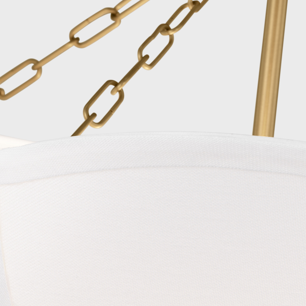 Crafted with Steel in a Burnished Brass finish with white linen fabric shade