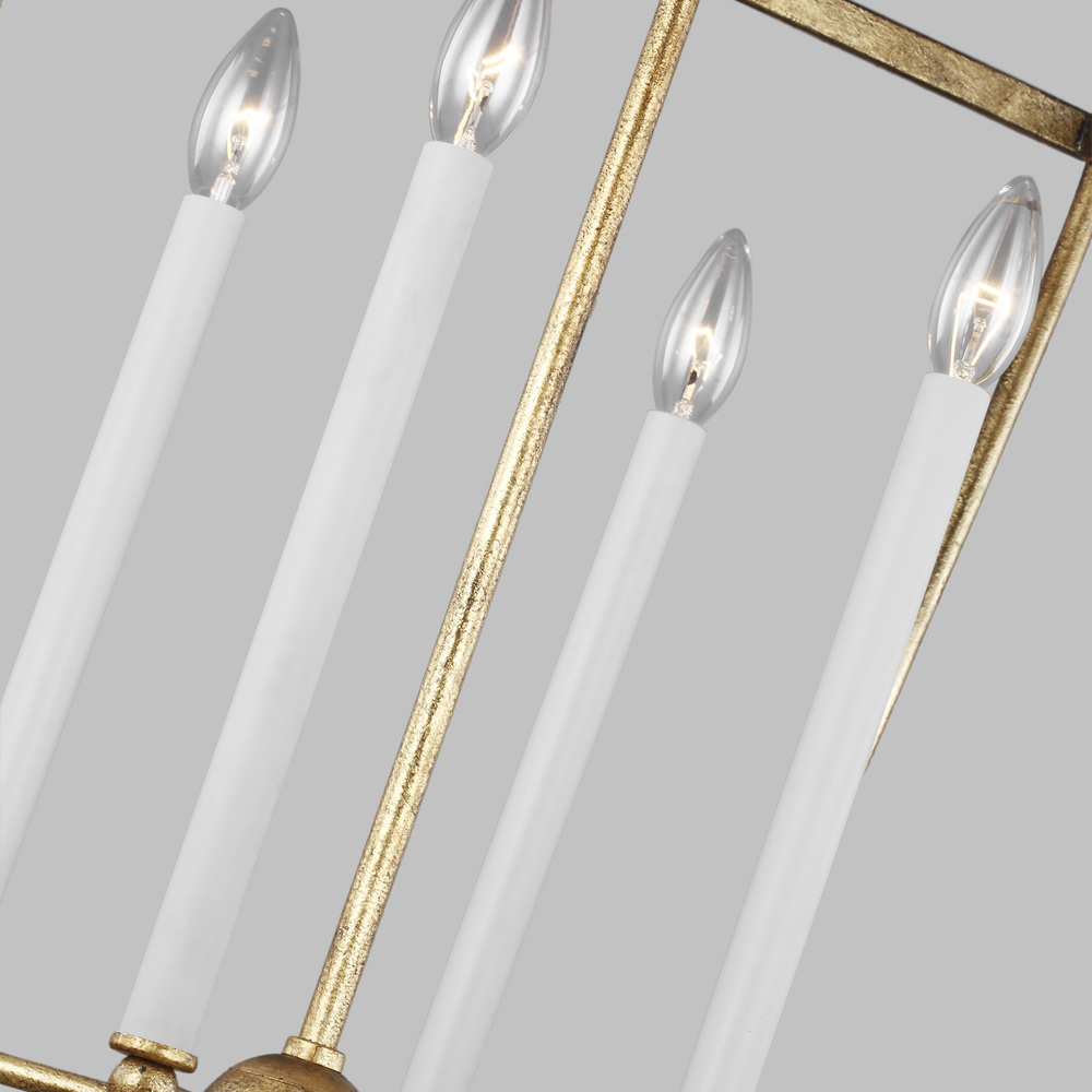 The Stonington four-light single-tier chandelier in antique gold is the perfect way to achieve your home's desired fashion or functional needs. Chapman & Myers have paired back the plantation-style lantern to its basic form – removing the glass sides and any adornment. The antique gild frame gives it a more classic, elegant look. Find the height or width that best matches your space.