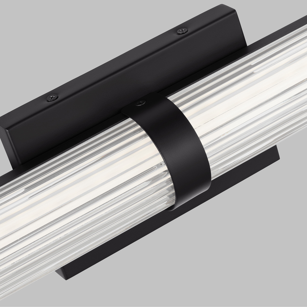 Syden is crafted of steel with clean-lined backplate and ridged glass shade. This understated detailing makes for a versatile design, at home in either modern, transitional or traditional interiors. Syden can be mounted horizontal or vertical.