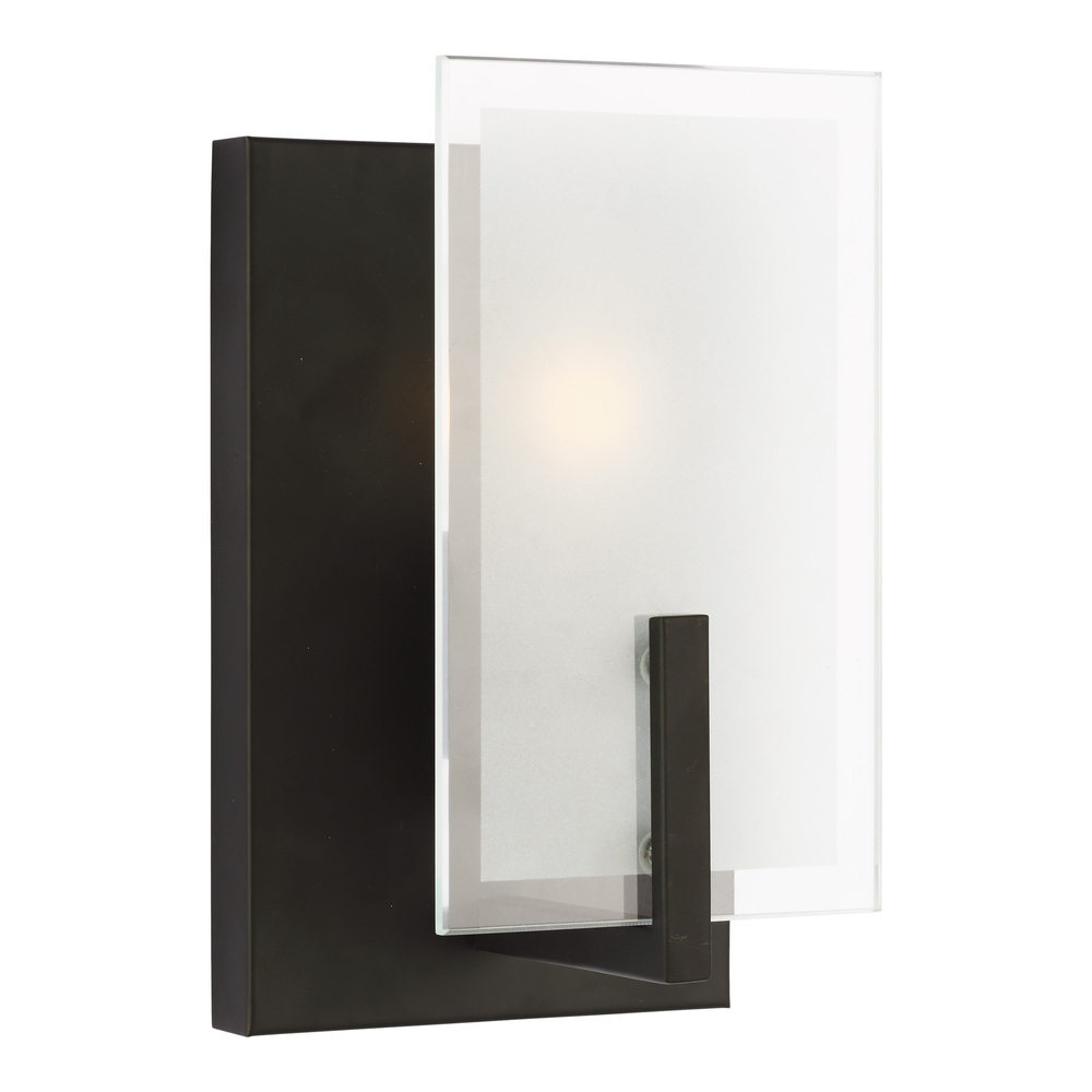 The Syll one light wall sconce in midnight black provides abundant light for your bath vanity, while adding a layer of today's style to your interior design. Syll features a stylish frame with brilliant frosted beveled glass panels.