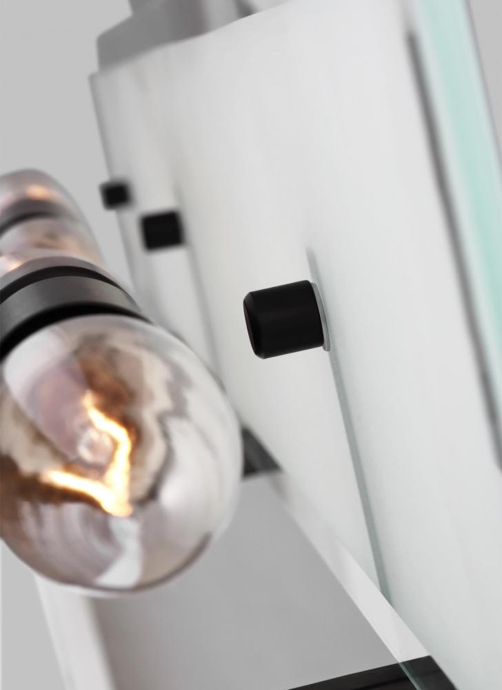 Modern wall fixture with geometric frosted glass shades perfect for the bathroom.