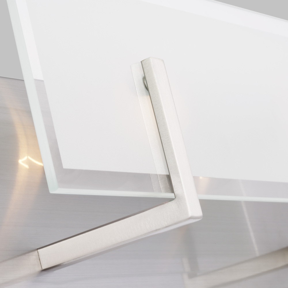 The Syll two light vanity fixture in brushed nickel provides abundant light for your bath vanity, while adding a layer of today's style to your interior design. Syll features a stylish frame with brilliant frosted beveled glass panels.