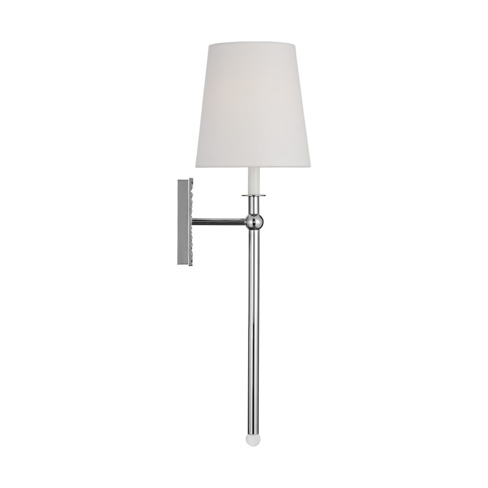 The Baxley wall sconce by Alexa Hampton exudes elegance, bringing modern elements to a traditional silhouette. With an exaggerated stem capped with a crystal ball, this sconce makes a bold, sleek statement and will align nicely in your hallway or as a bath vanity. The Alexa Hampton Collection brings a fresh take on traditional looks, beautiful and unique hand-applied finishes, and stunning, thoughtful, inspired pieces.