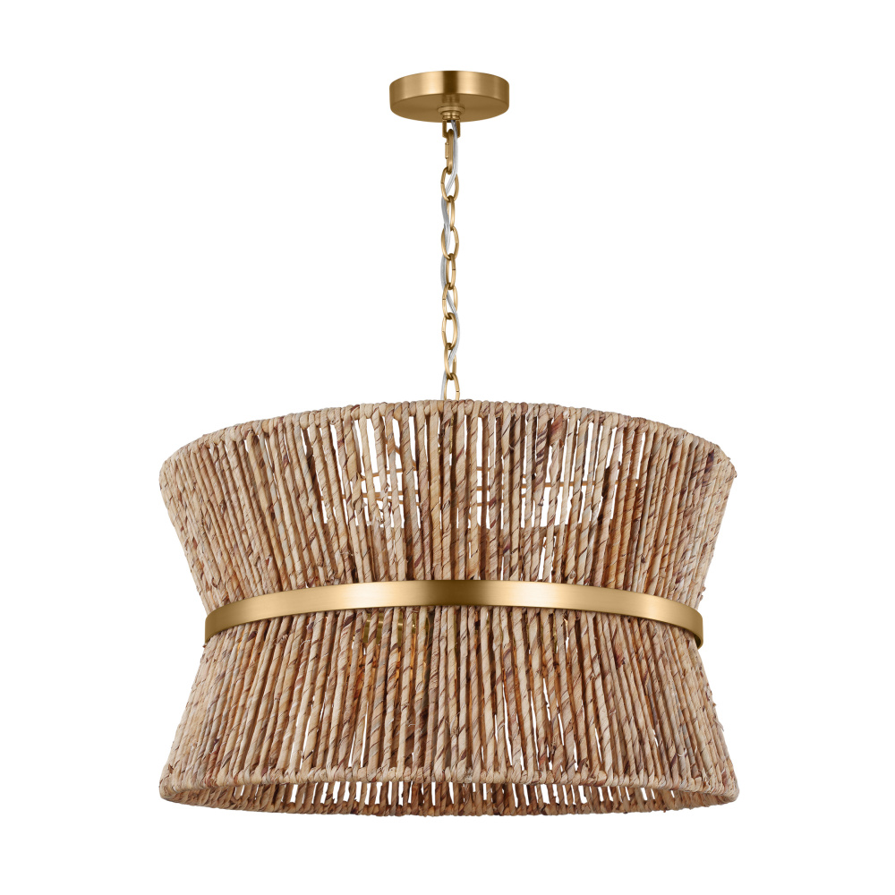 Make a bold style statement with the coastal-inspired organic Thurlo series by Drew & Jonathan Scott. Crafted of natural abaca rope, hand wrapped around the frame for a modern bohemian style and accented with a metal band for a tailored look. Filtering the light from within, each piece creates a play of light and shadow in a room, adding an inviting ambiance.