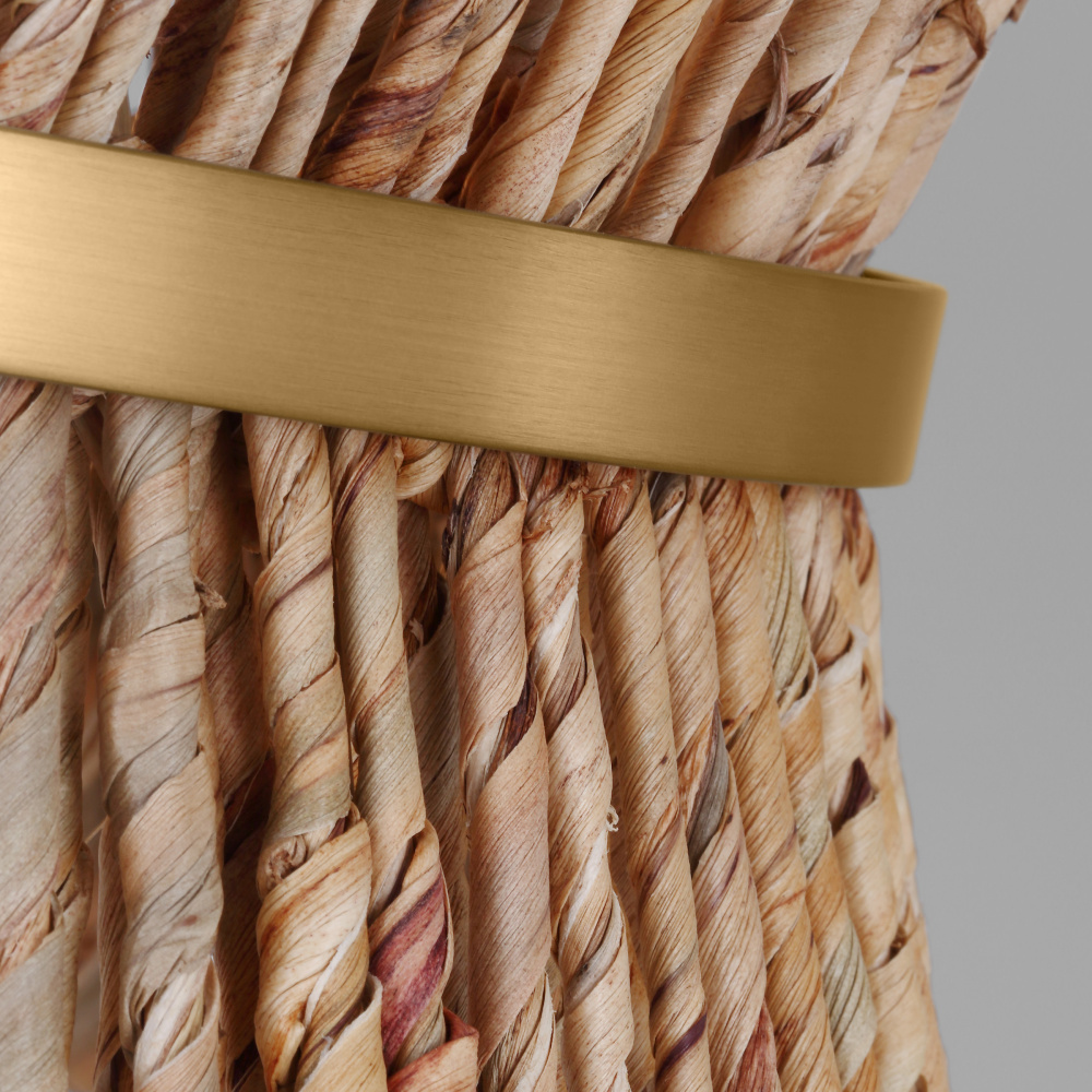 Make a bold style statement with the coastal-inspired organic Thurlo series by Drew & Jonathan Scott. Crafted of natural abaca rope, hand wrapped around the frame for a modern bohemian style and accented with a metal band for a tailored look. Filtering the light from within, each piece creates a play of light and shadow in a room, adding an inviting ambiance.