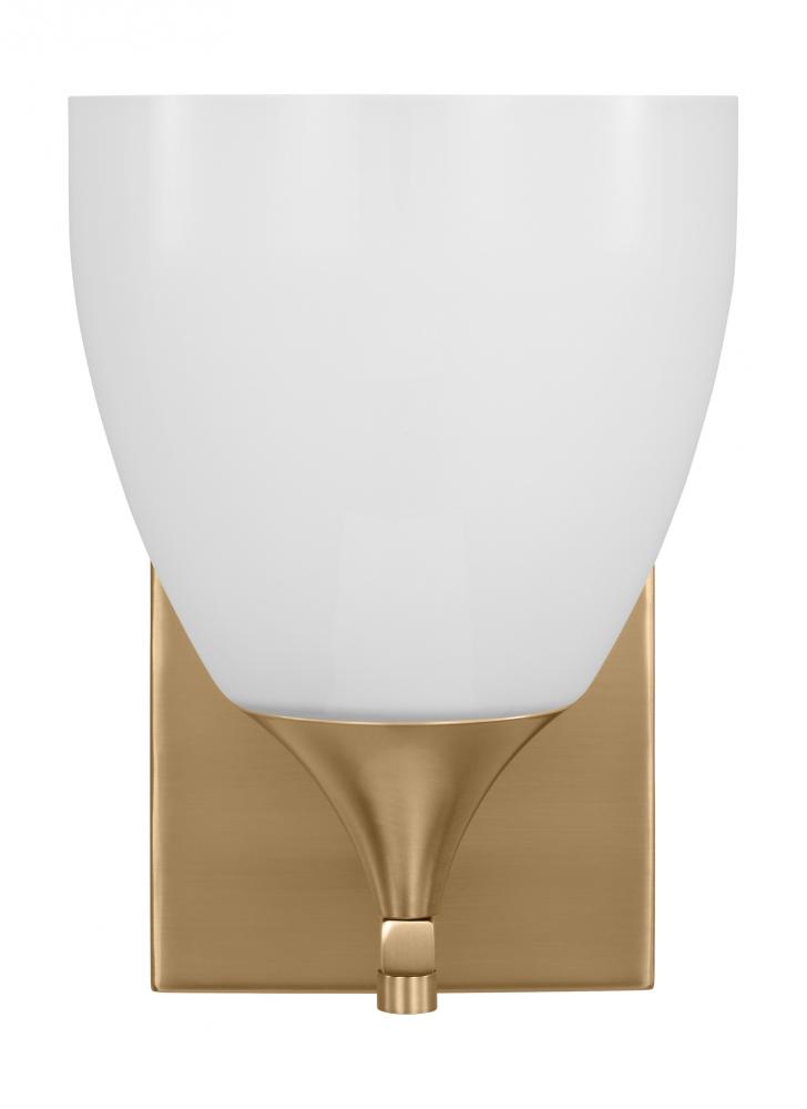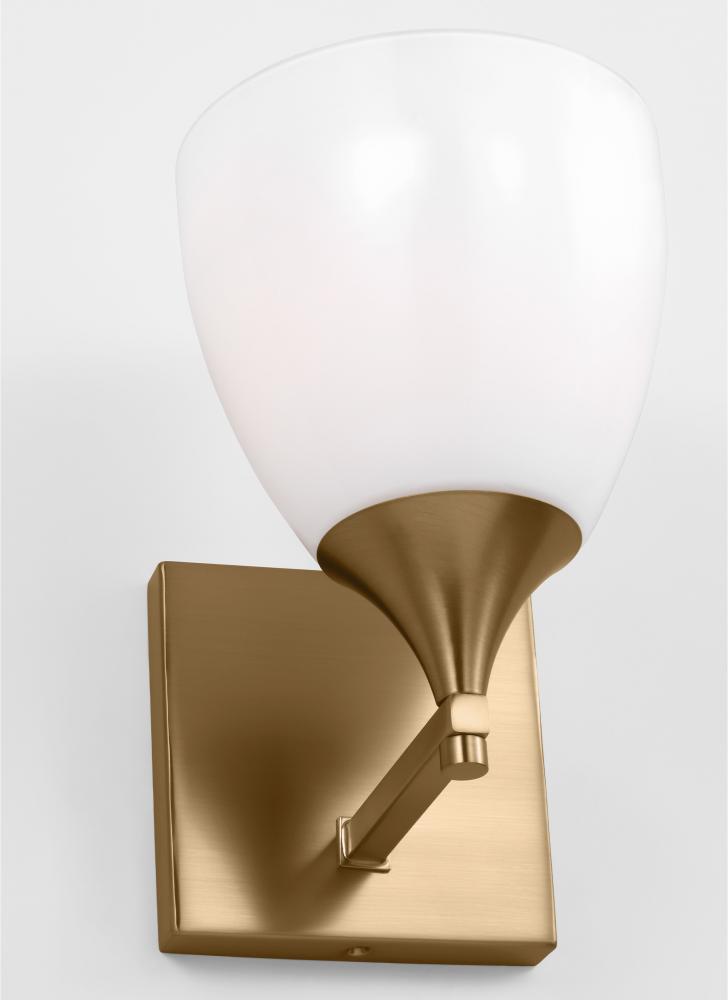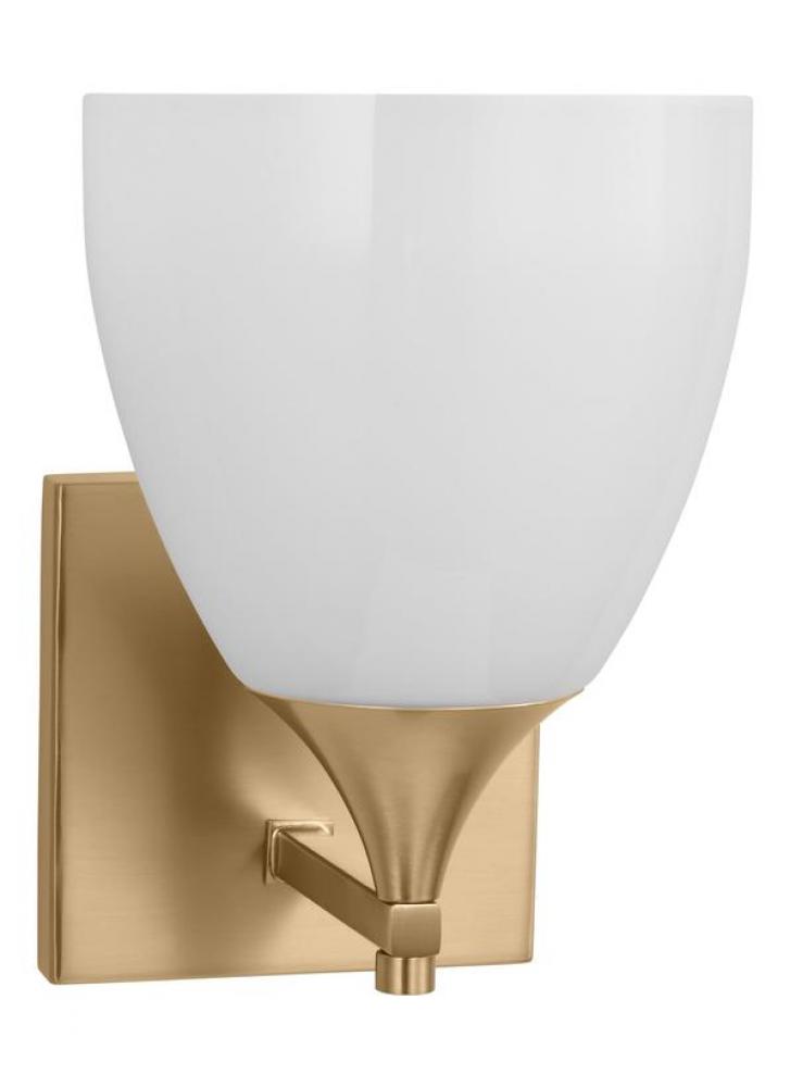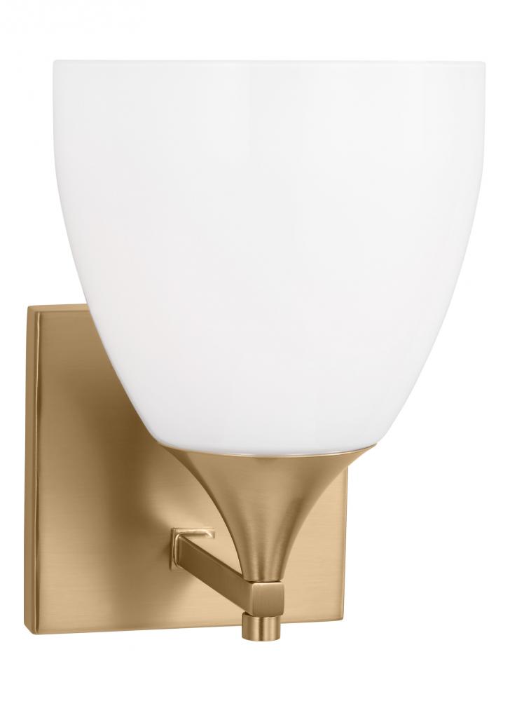 Made to coordinate across a broader range of bath hardware and design styles, this light breathes new life to its traditional shape with a milk glass shade and striking, modern finishes