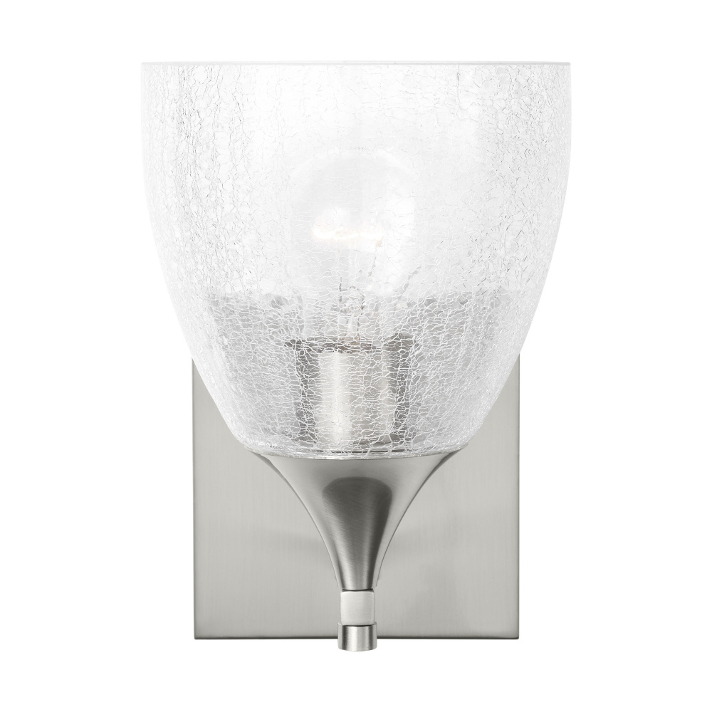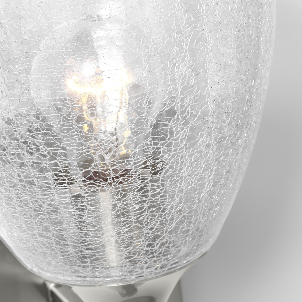Crafted with Steel in a Brushed Nickel finish with clear crackle glass shade
