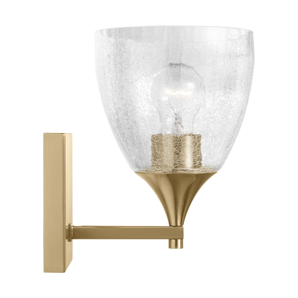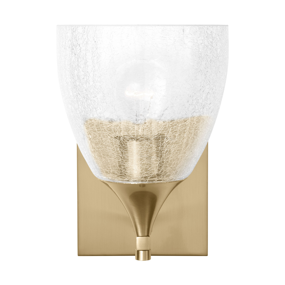 Crafted with Steel in a Satin Brass finish with clear crackle glass shade