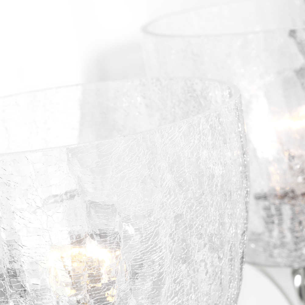 Crafted with Steel in a Chrome finish with clear crackle glass shades
