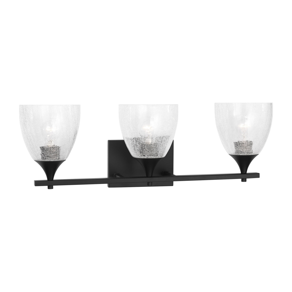 Crafted with Steel in a Midnight Black finish with clear crackle glass shades