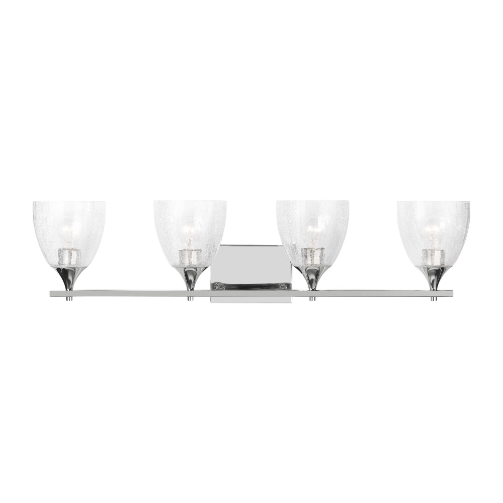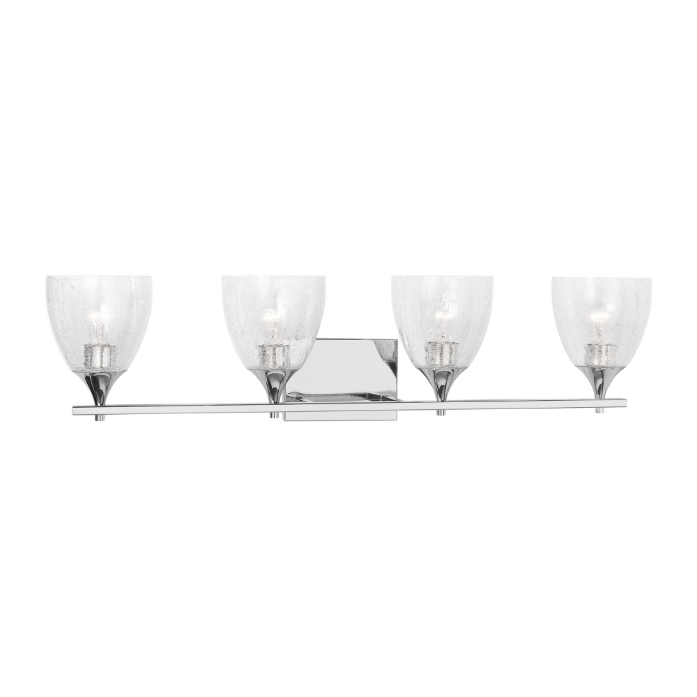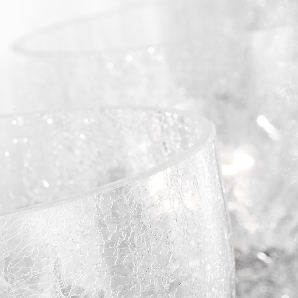 Crafted with Steel in a Chrome finish with clear crackle glass shades