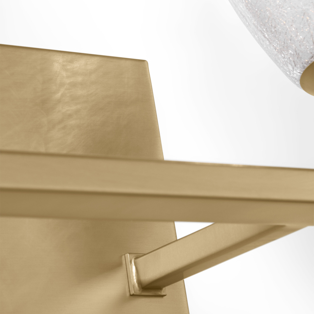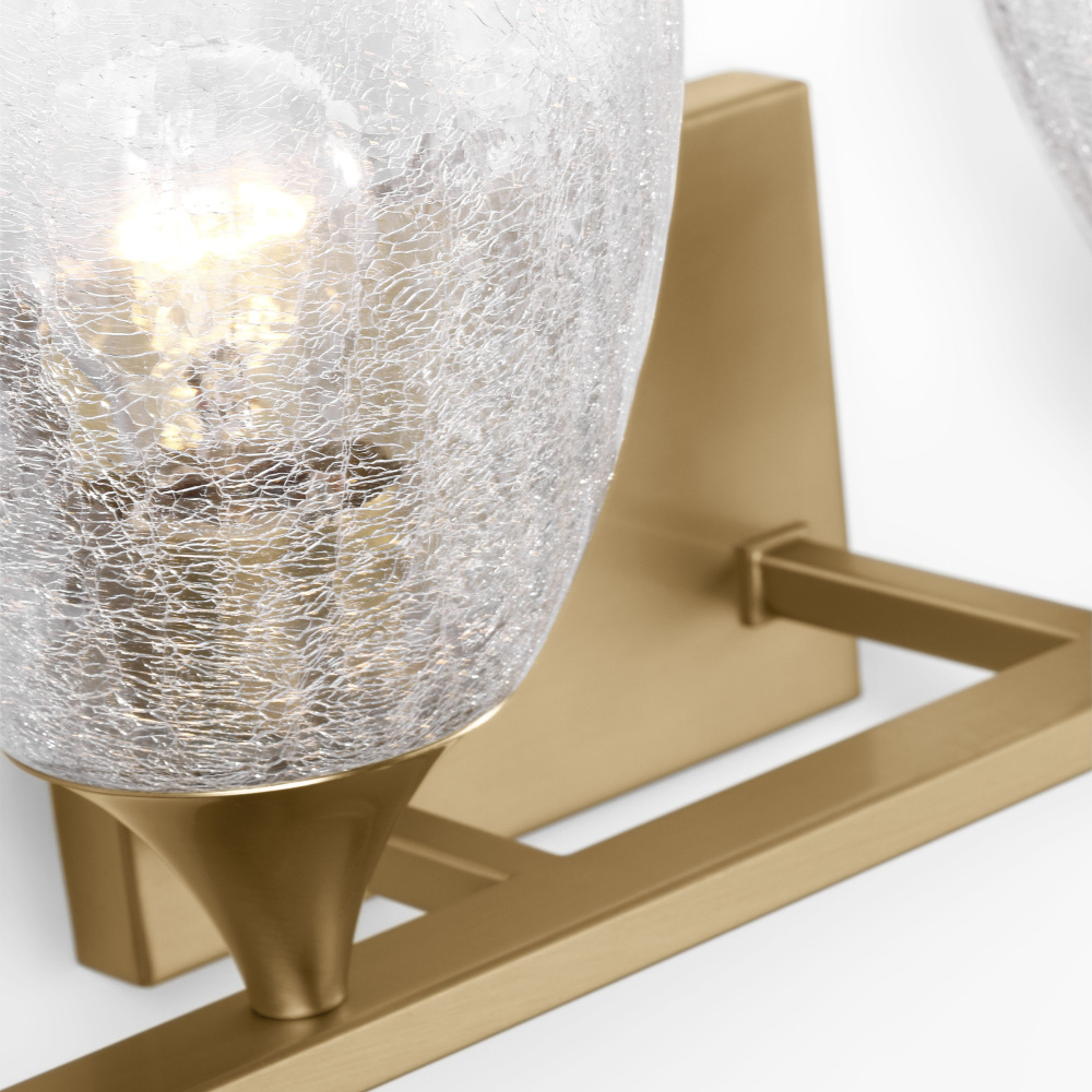 Crafted with Steel in a Satin Brass finish with clear crackle glass shades