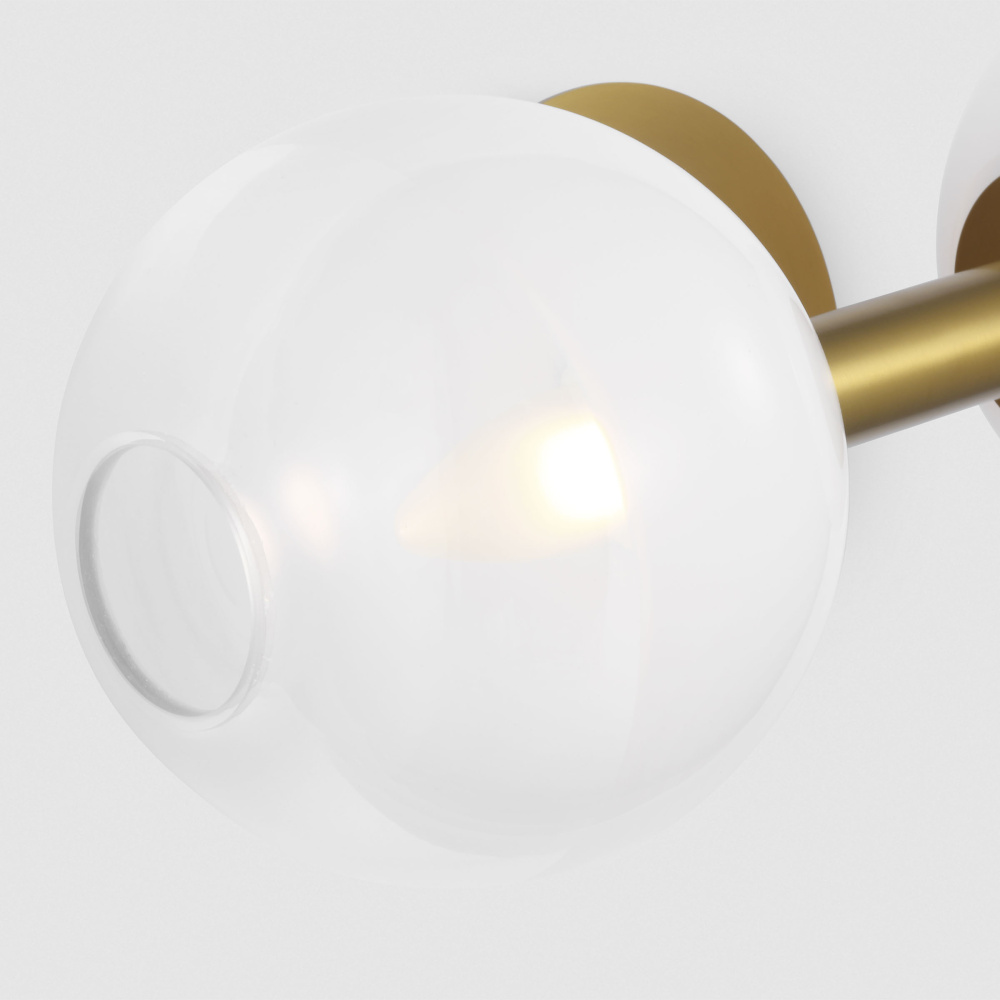 Crafted with Steel in a Burnished Brass finish with milk / clear glass mix glass shades