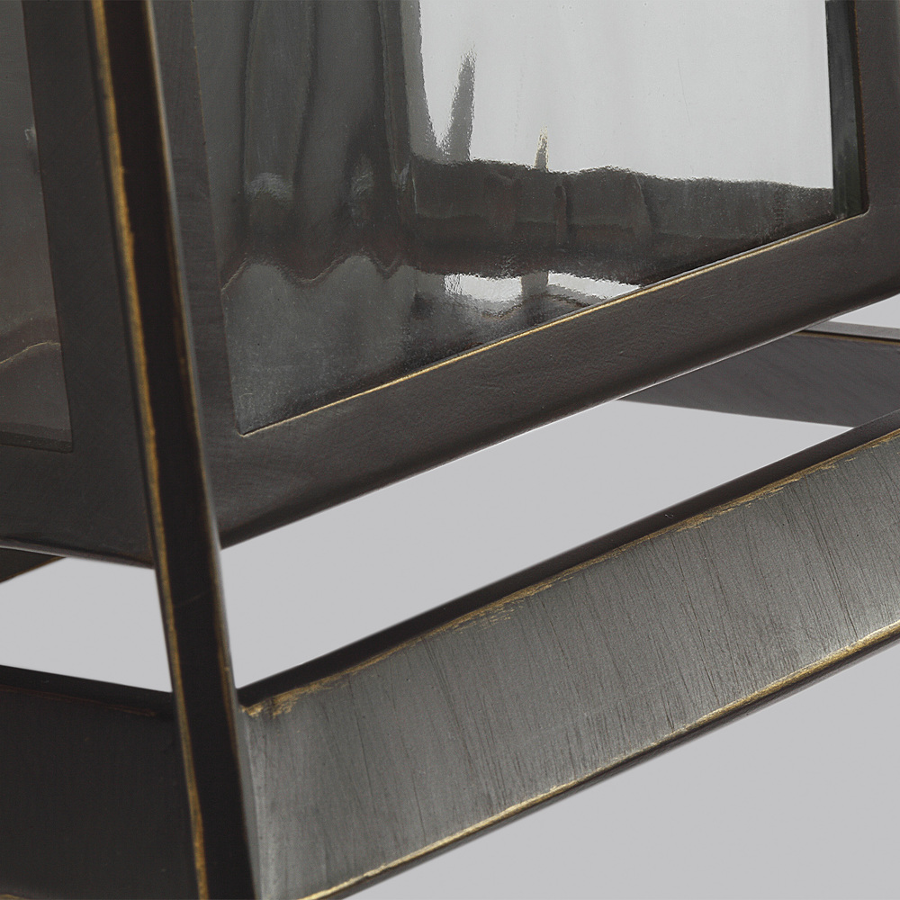 The Urbandale one light outdoor wall fixture in antique bronze creates a warm and inviting welcome presentation for your home's exterior. The Urbandale outdoor collection by has a modern design which features beveled edges achieved with the fine precision of crisp die-cast construction. Both incandescent and LED versions are available, and each offer slightly different aesthetic. The incandescent version is offered in the Antique Bronze finish which nicely contrasts with the Painted Burnished Brass finish on the squared-off candle holders and Clear Seeded glass to subtly obscure the light source. The LED version is offered in an Antique Bronze finish with Clear Water glass.