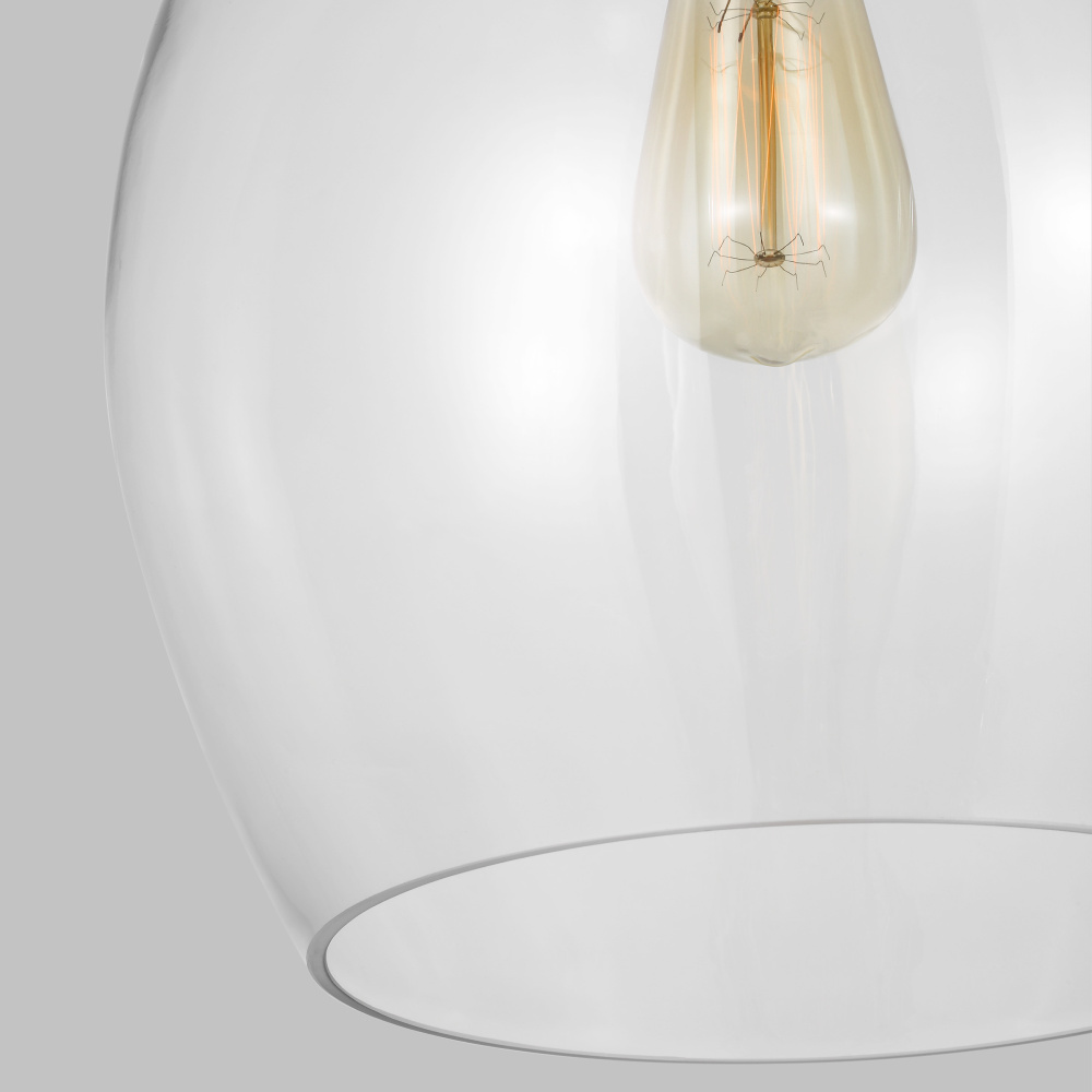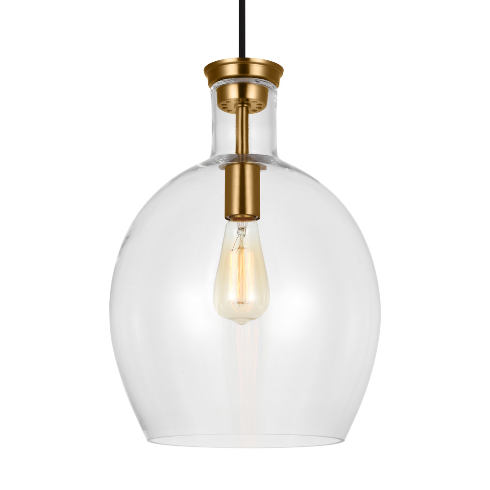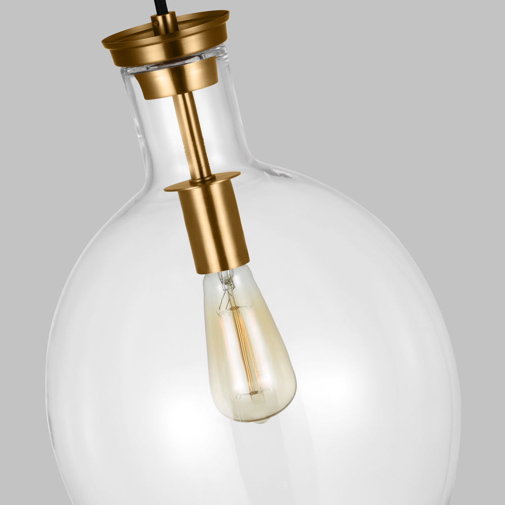 Designed by Thomas O'Brien, Vaso is a new glass urn-shaped ceiling light that takes its form from a vintage modern ceramic vase. Crafted from steel, Vaso offers a signature focal point with a single lamp suspended downward from the center. A hint of Burnished Brass peeks through the Clear glass, becoming the fixture's central design element. Vaso pendants may be installed as single pendants or clustered in multiples, which would be an ideal installation for entry, dining room, living room, or kitchen lighting over a table. In addition to being damp-rated, the pendant can be mounted on a sloped ceiling.