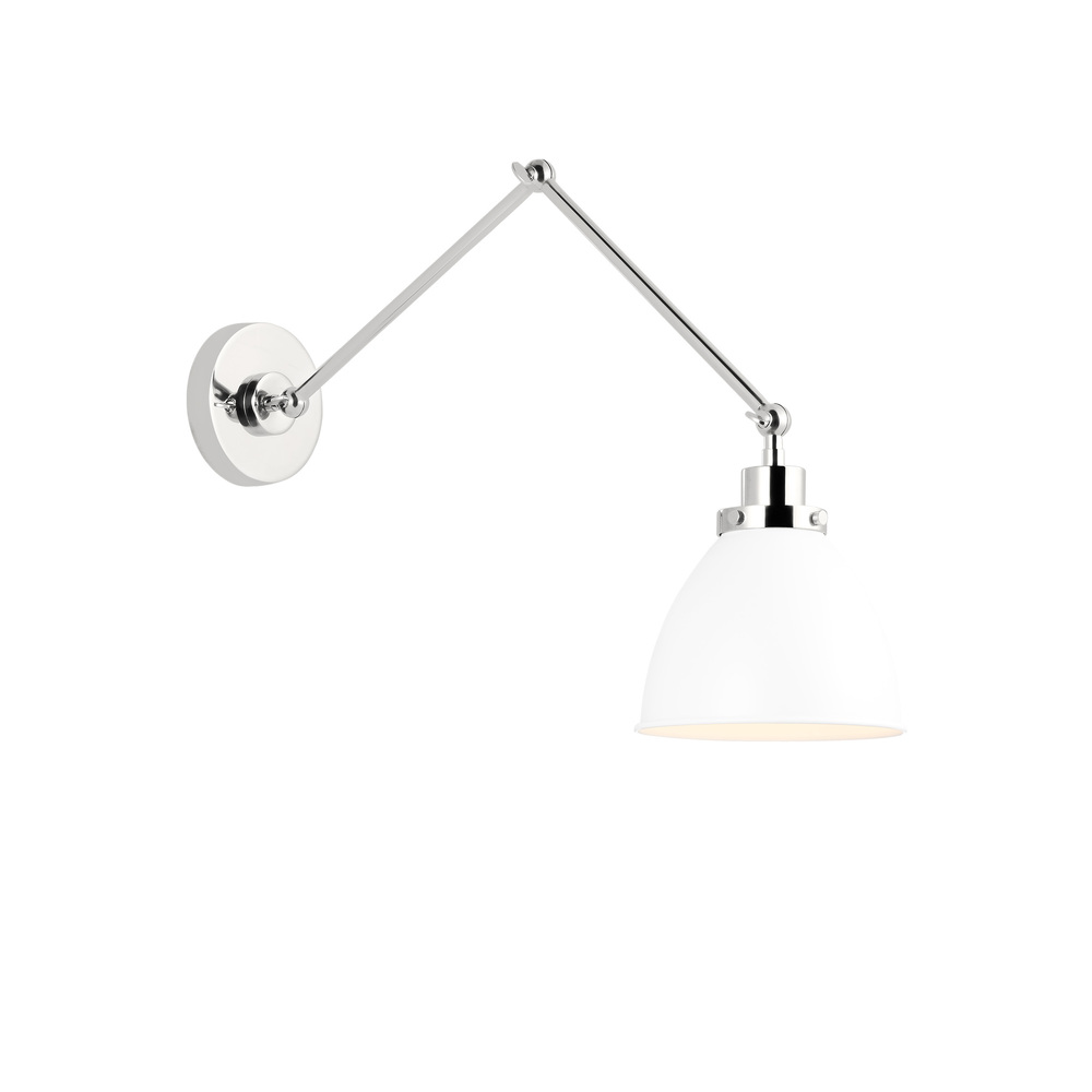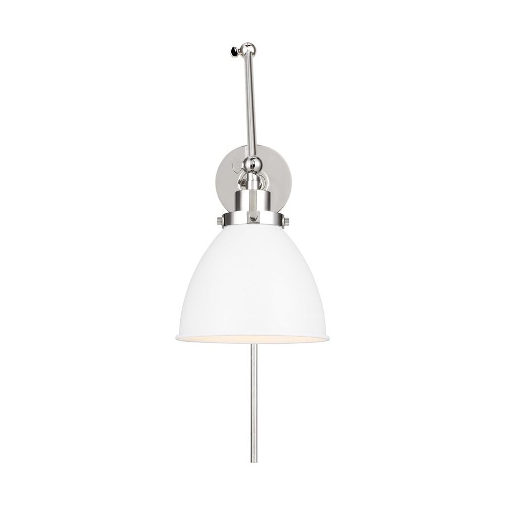 The Wellfleet one light wall sconce by Chapman & Myers is inspired by various classic utility silhouette’s - from factory lighting to barn sconces - capped by contrasting metal hardware. Each shade of the Wellfleet collection is available multiple sizes of 3 versatile profiles; either a flat farm dome, a traditional factory dome, or tapered cone. The shades are available with either a black or white finish and are paired with either a burnished brass or polished nickel collar, chain and canopy.
