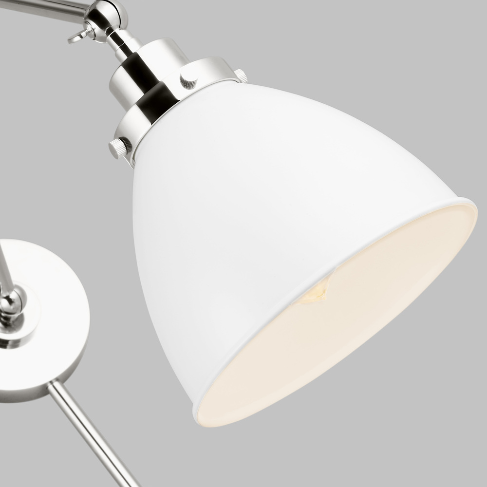 The simple industrial-inspired Wellfleet double arm sconce features a metal dome shaped shade that will tie into a number of design aesthetics