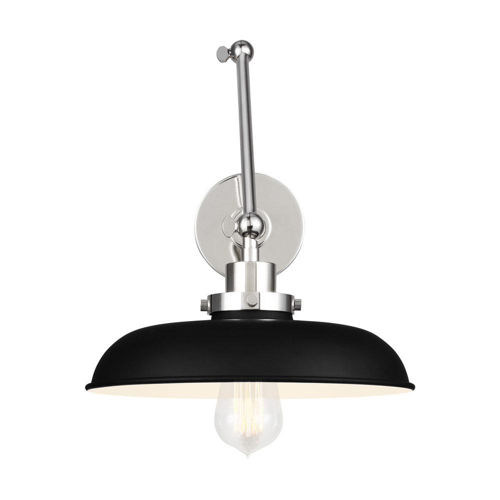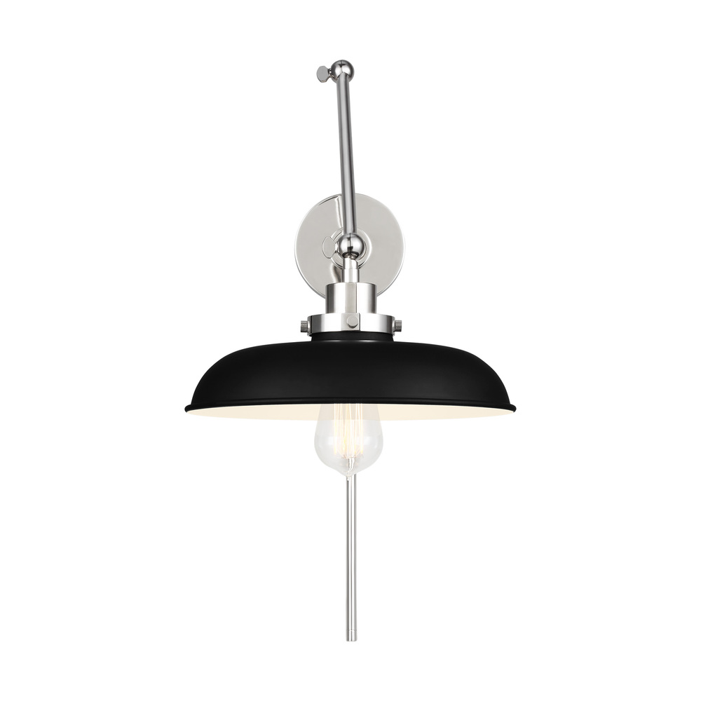 The Wellfleet one light wall sconce by Chapman & Myers is inspired by various classic utility silhouette’s - from factory lighting to barn sconces - capped by contrasting metal hardware. Each shade of the Wellfleet collection is available multiple sizes of 3 versatile profiles; either a flat farm dome, a traditional factory dome, or tapered cone. The shades are available with either a black or white finish and are paired with either a burnished brass or polished nickel collar, chain and canopy.