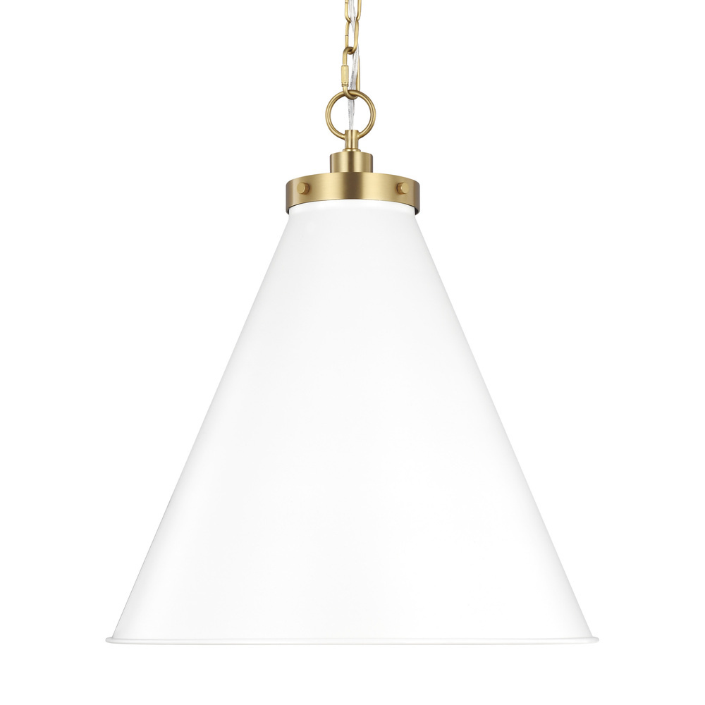 Inspired by various classic utility silhouettes - from factory lighting to barn sconces - capped by contrasting metal hardware. Each shade of the Wellfleet series by Chapman & Myers is available multiple sizes of 3 versatile profiles; either a flat farm dome, a traditional factory dome, or tapered cone. The shades are available with either a black or white finish and are paired with either a burnished brass or polished nickel collar, chain and canopy.