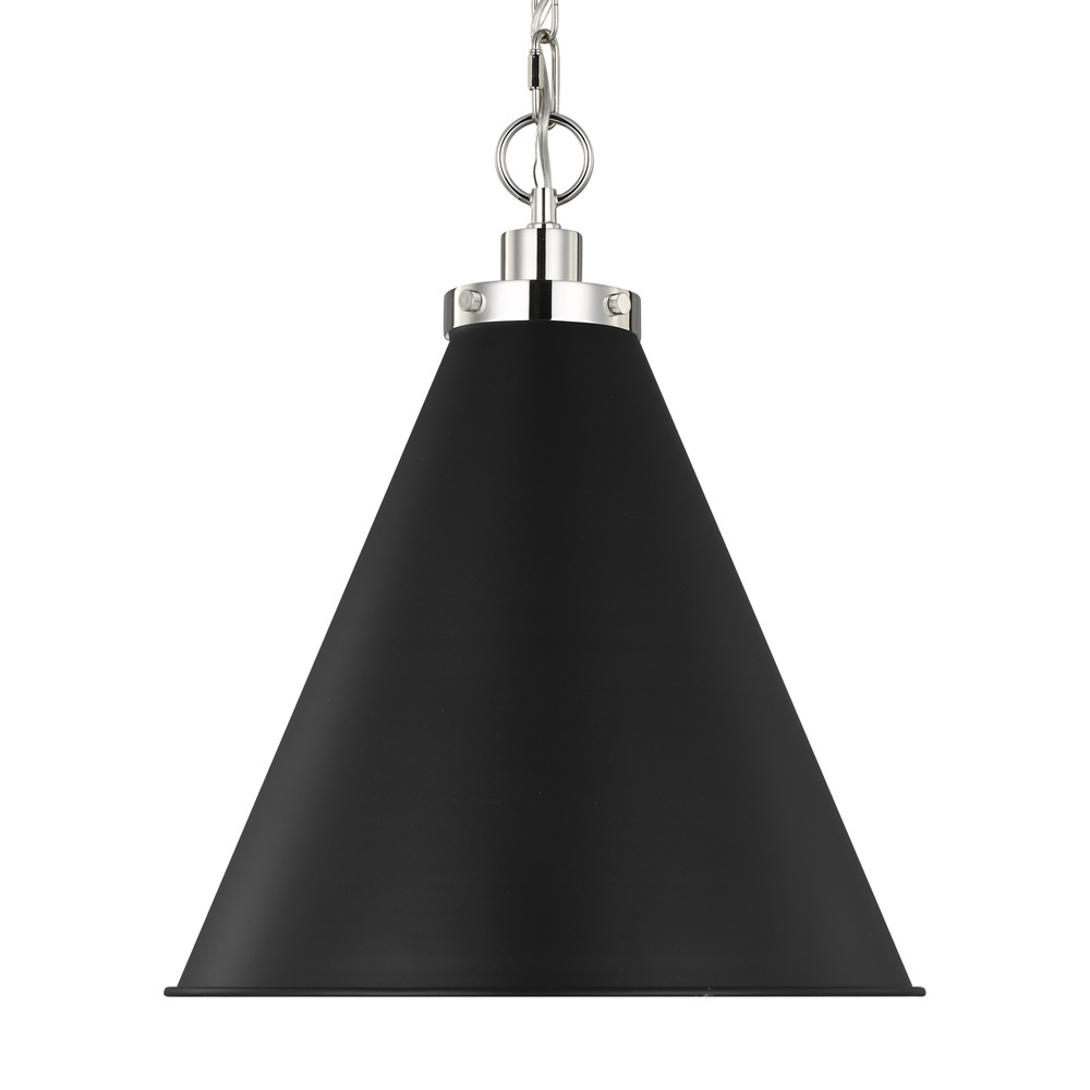 Inspired by various classic utility silhouettes - from factory lighting to barn sconces - capped by contrasting metal hardware. Each shade of the Wellfleet series by Chapman & Myers is available multiple sizes of 3 versatile profiles; either a flat farm dome, a traditional factory dome, or tapered cone. The shades are available with either a black or white finish and are paired with either a burnished brass or polished nickel collar, chain and canopy.