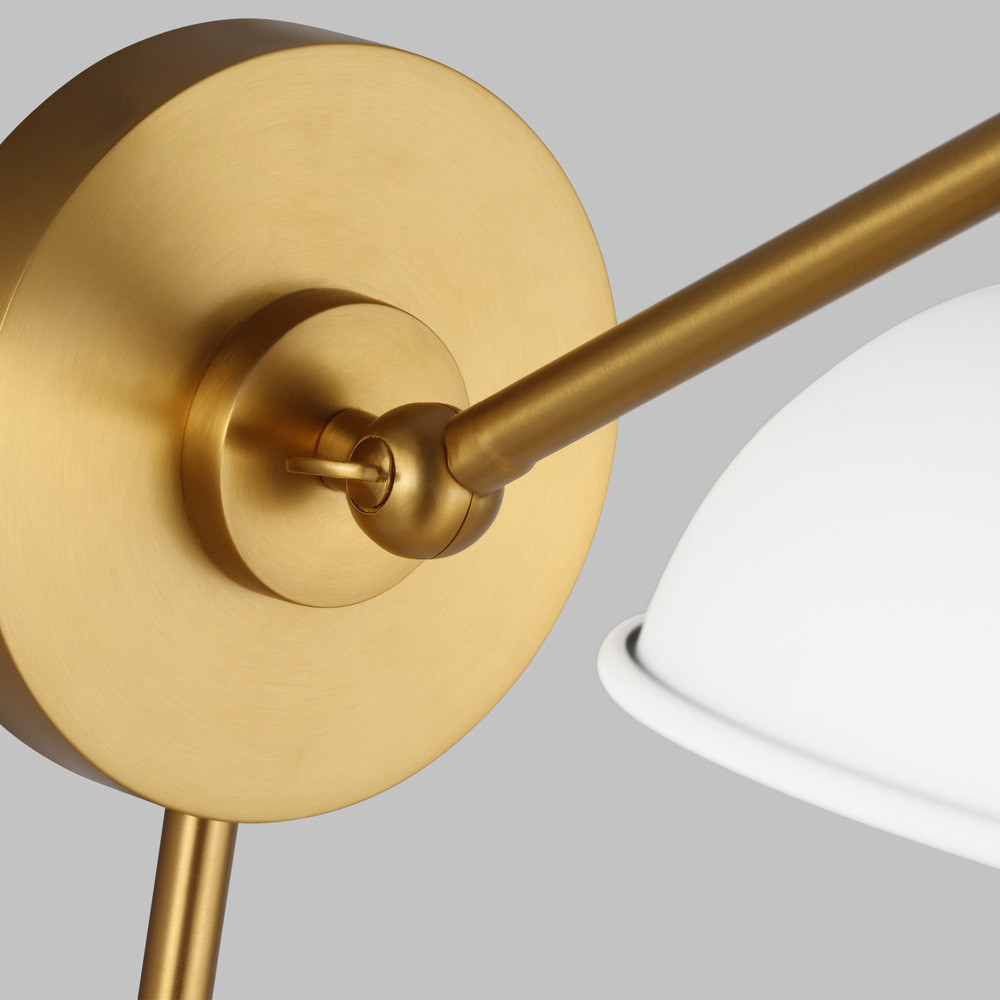 The Wellfleet one light wall sconce by Chapman & Myers is inspired by various classic utility silhouette’s - from factory lighting to barn sconces - capped by contrasting metal hardware. Each shade of the Wellfleet collection is available multiple sizes of 3 versatile profiles; either a flat farm dome, a traditional factory dome, or tapered cone. The shades are available with either a black or white finish and are paired with either a burnished brass or polished nickel collar, chain and canopy.