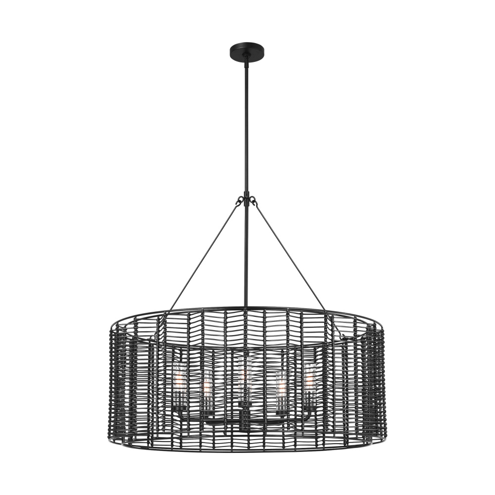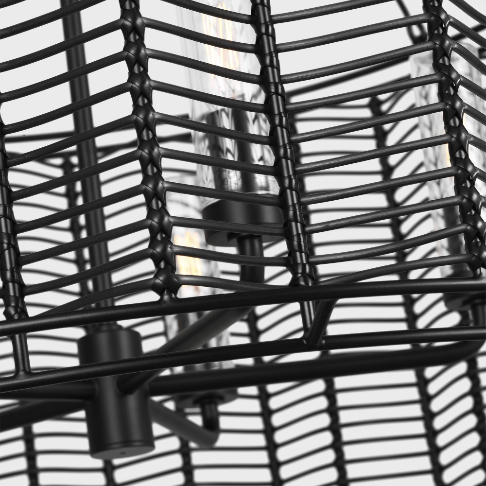 The Winslow series by Thom Filicia redefines the timeless chevron motif with a bold, three-dimensional design that brings texture and depth to any space. The intricately woven strands form a striking silhouette that surrounds an interior candelabra, allowing light to filter through and create captivating patterns and shadows. This innovative take on a classic design lends a contemporary edge while maintaining a sense of timeless elegance. Whether hung as a statement piece in a dining room, layered in a cozy living area, or under a covered patio, the Winslow hanging shades are a versatile choice that seamlessly blends with styles .