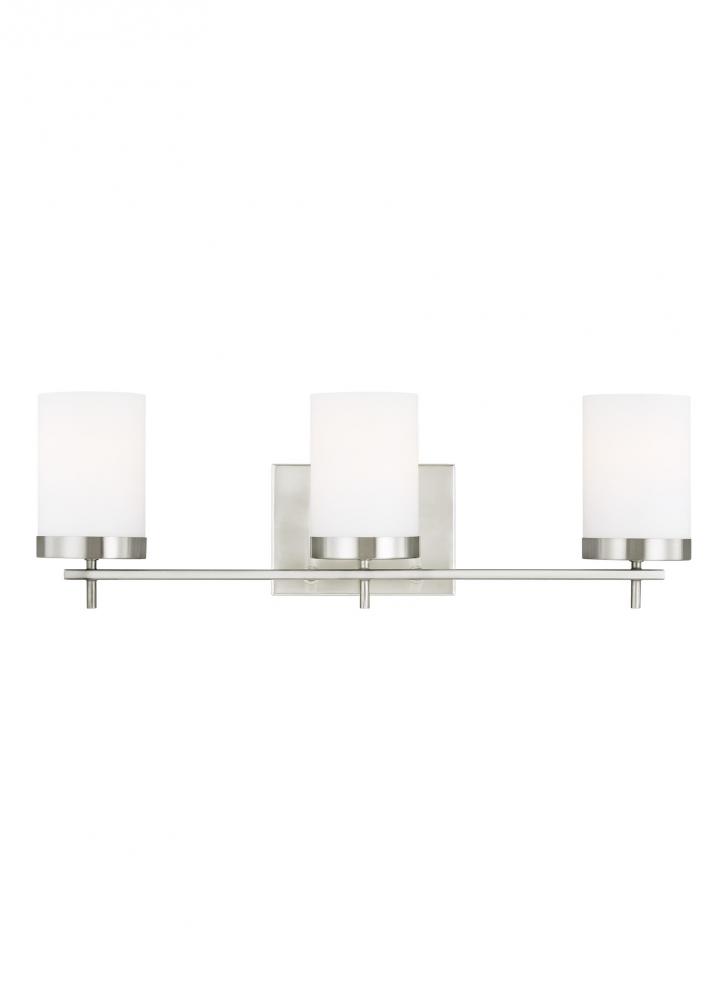 The Zire three light vanity fixture in brushed nickel provides abundant light for your bath vanity, while adding a layer of today's style to your interior design. Zire embodies simple clean lines in three finishes that strike a perfect balance of elegant yet minimalist design.