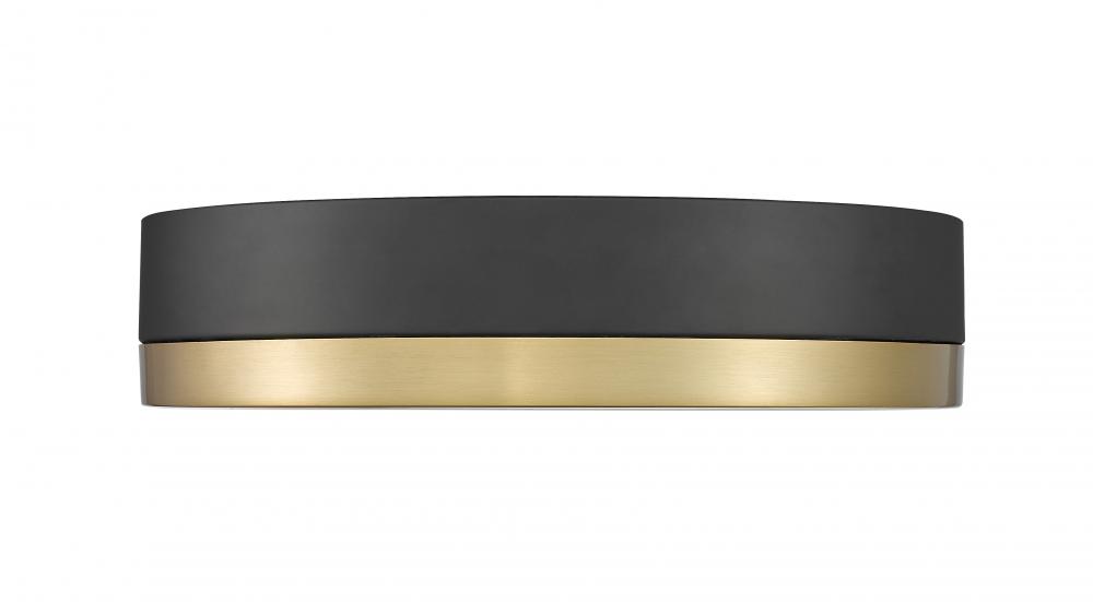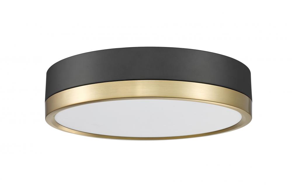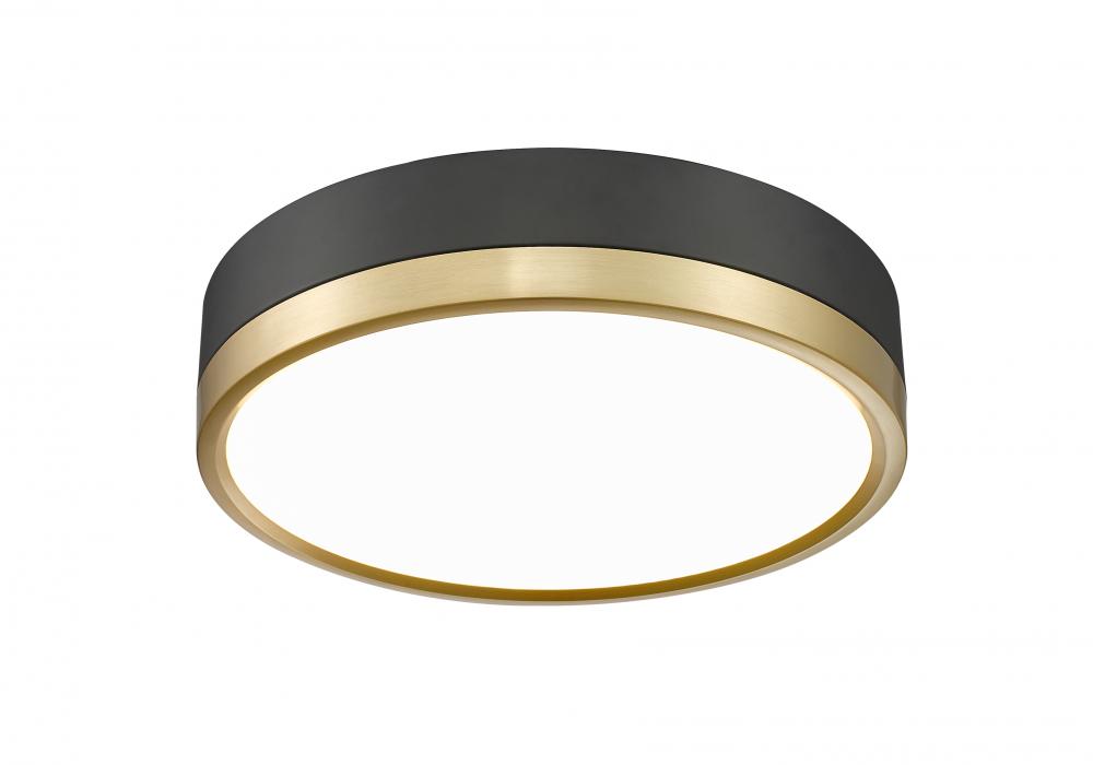 A low-key yet classic style stands out in the design of this elegant one-light flush mount ceiling light. A ring-shaped bezel canopy mixes matte black and modern gold finishes, adding a frosted acrylic diffuser filtering dimmable LEDs that offer options for white color levels.