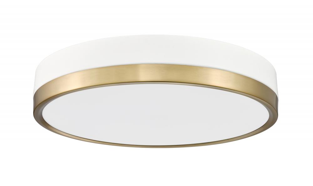 Tech advances improve performance in a transitional and stylish one-light flush mount ceiling light, ideal for bringing a sophisticated element to a transitional space. With a minimalist motif, this fixture features a blend of matte white and modern gold finishes on its circular steel canopy, embellishing a frosted diffuser that sends dimmable lighting downward, with options for optimized white color values.