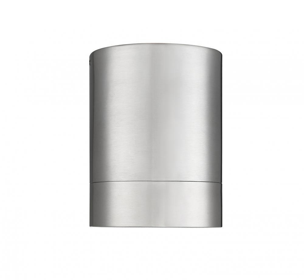Modern simplicity adopts a cylinder silhouette in a one-light flush mount ceiling light, adding character to a modern space. Optimized illumination updates this fixture made of brushed nickel finish steel, sectioned for separation and instrumental in perfecting the delivery of perfect white color values.