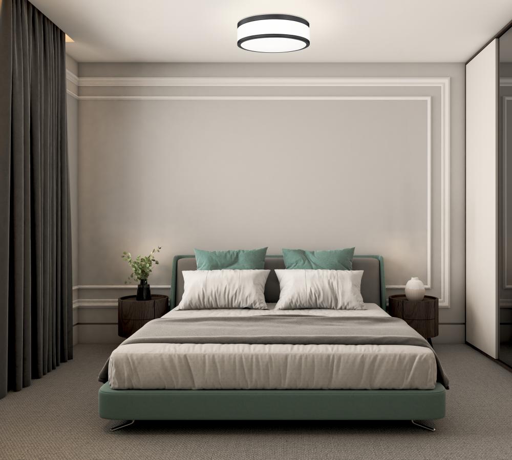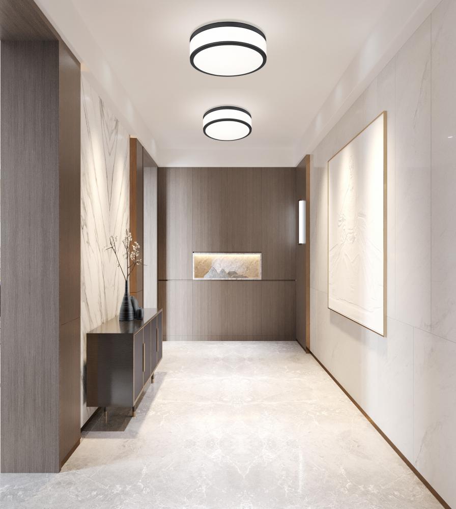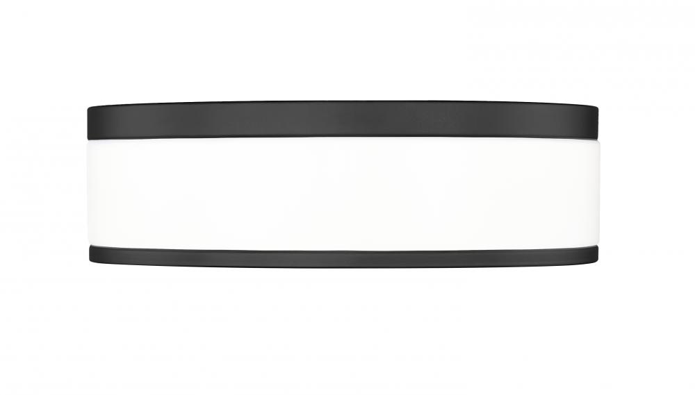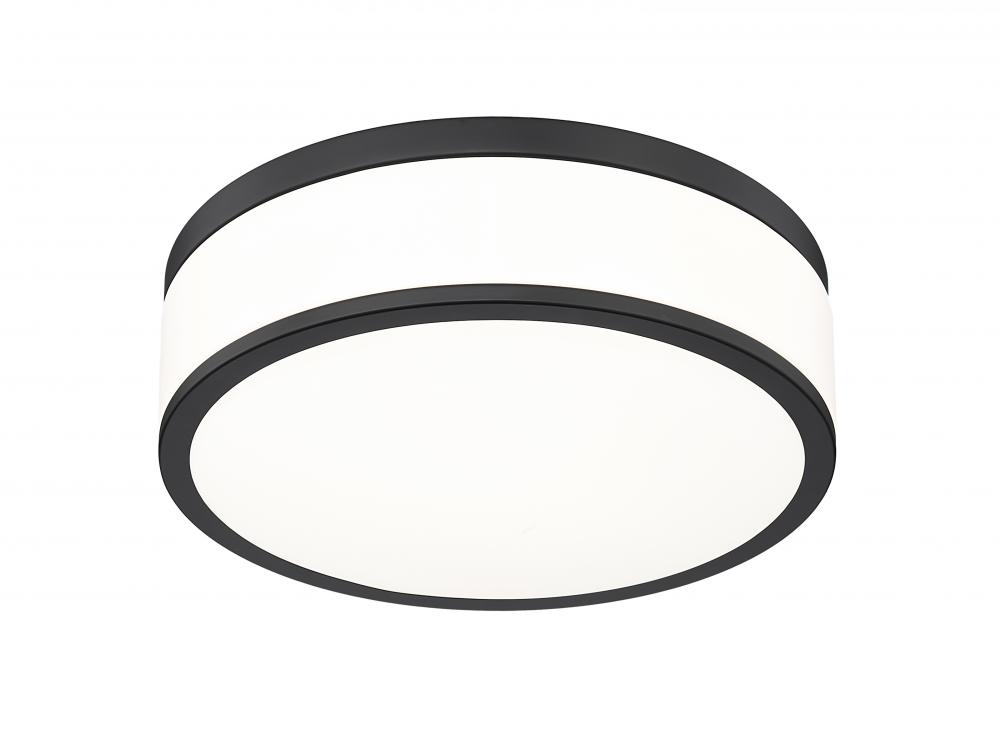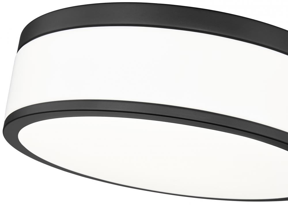 Matte black banding and frosted acrylic create a fresh, high contrast look for a contemporary one-light flush mount ceiling light. Perfect for a bedroom or den, it delivers bright illumination thats softly diffused for both tasks and ambiance. The LED design is energy efficient and versatile in size, perfect for a modern home.