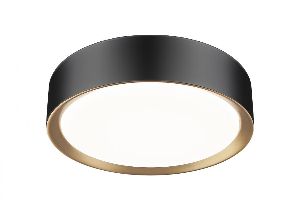 An inner finish of modern gold brings impeccable warmth and sophistication to this modern one-light flush mount ceiling light. Stunning over a bedroom, hall, or living room seating area, it boasts a clean, timeless silhouette complete with a frosted acrylic diffuser and integrated LEDs for bright, efficient illumination. Its matte black outer finish adds contrast and subtle sophistication in any space.