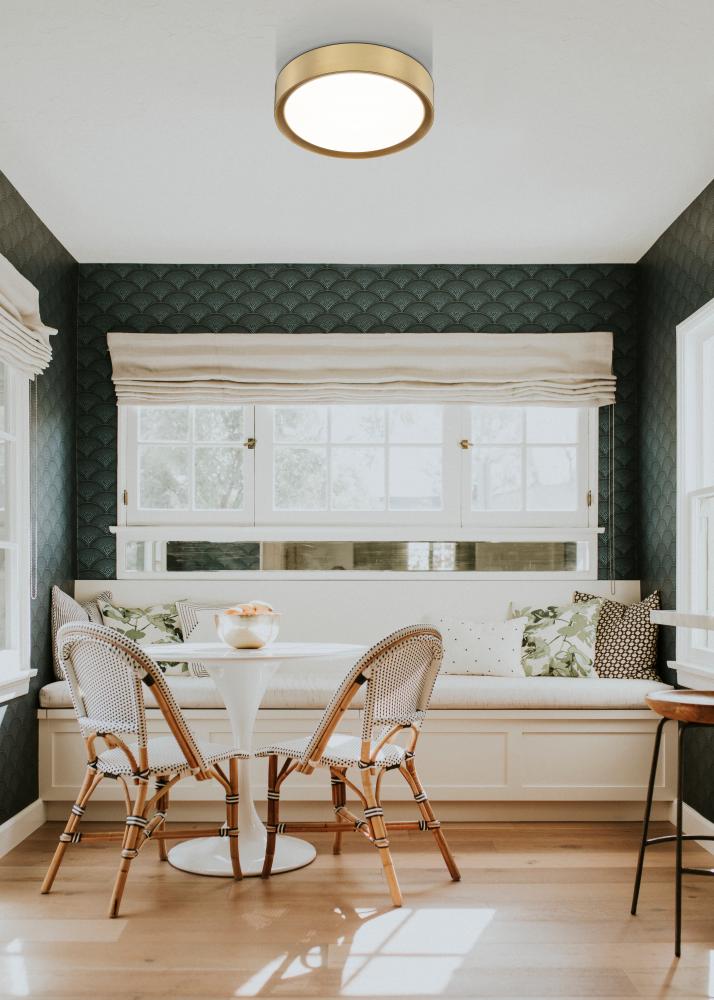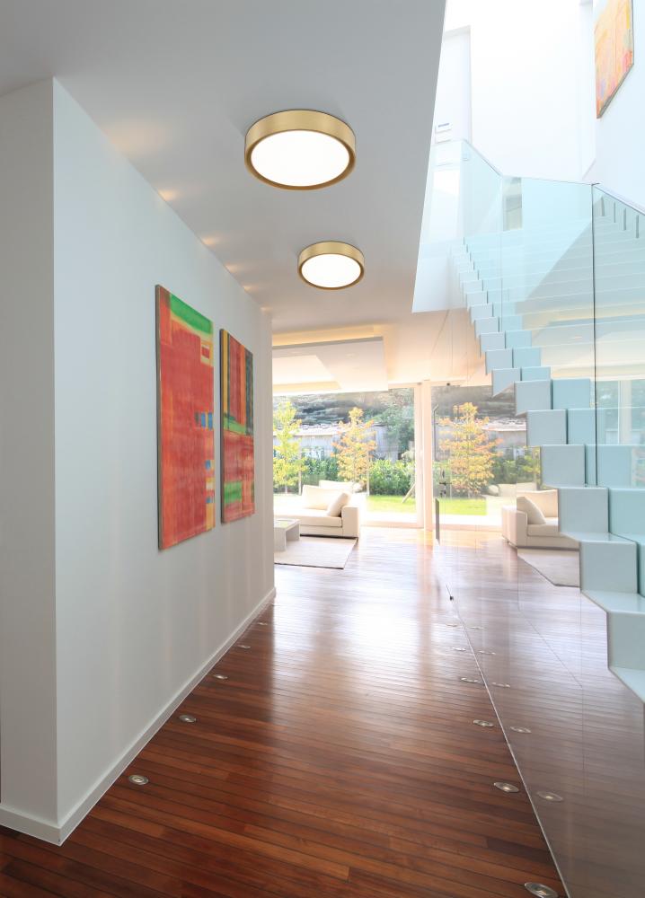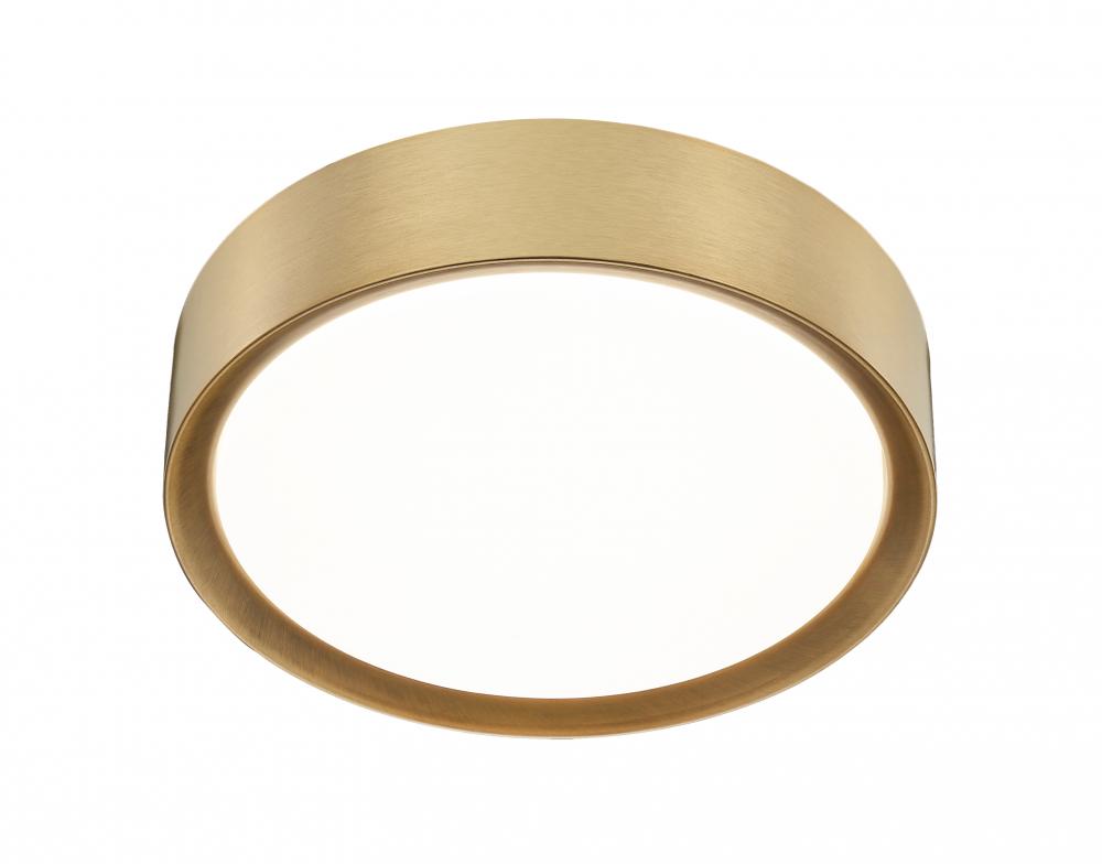 Modern gold finishing turns this modern one-light flush mount ceiling light into a spectacular decorative addition to your space. Its warm and rich, offering elegance to the integrated LEDs that provide energy efficient illumination for your bedroom, den, or living room.