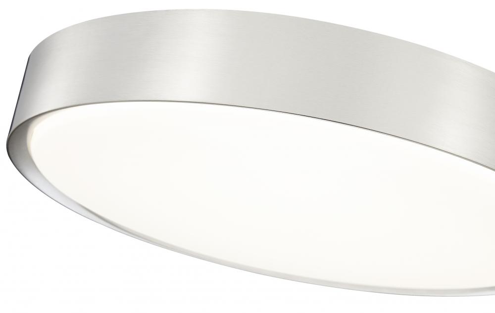 Take decor to new heights with the fresh look and feel of a modern one-light flush mount ceiling light. Its generous size is complemented with a sleek brushed nickel finish, offering the perfect complement to a rounded frosted acrylic diffuser, delivering beautiful illumination in a living area, den, or bedroom.