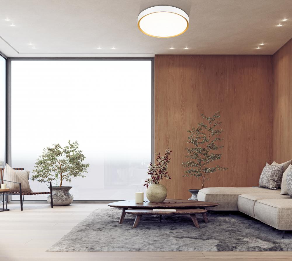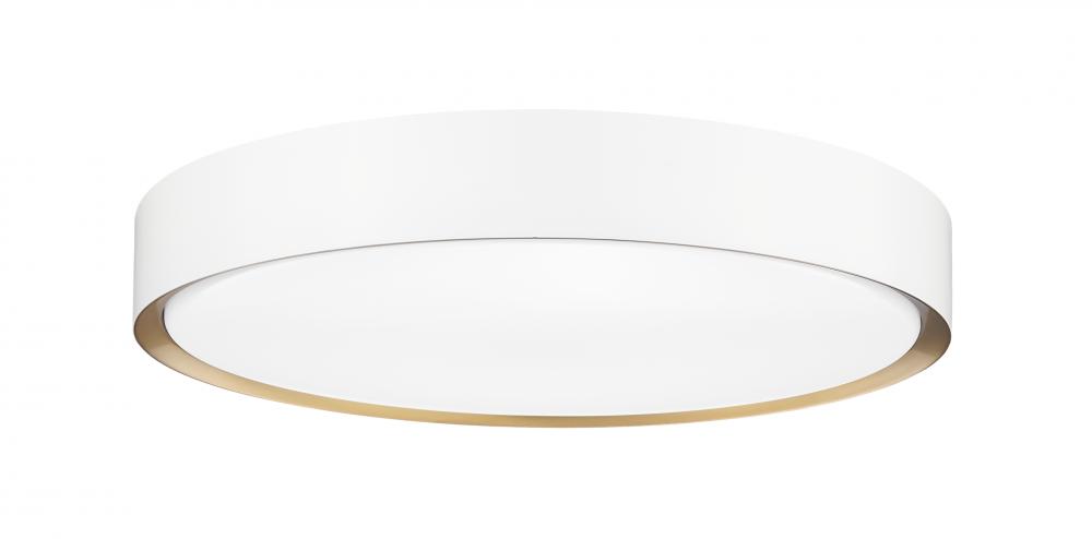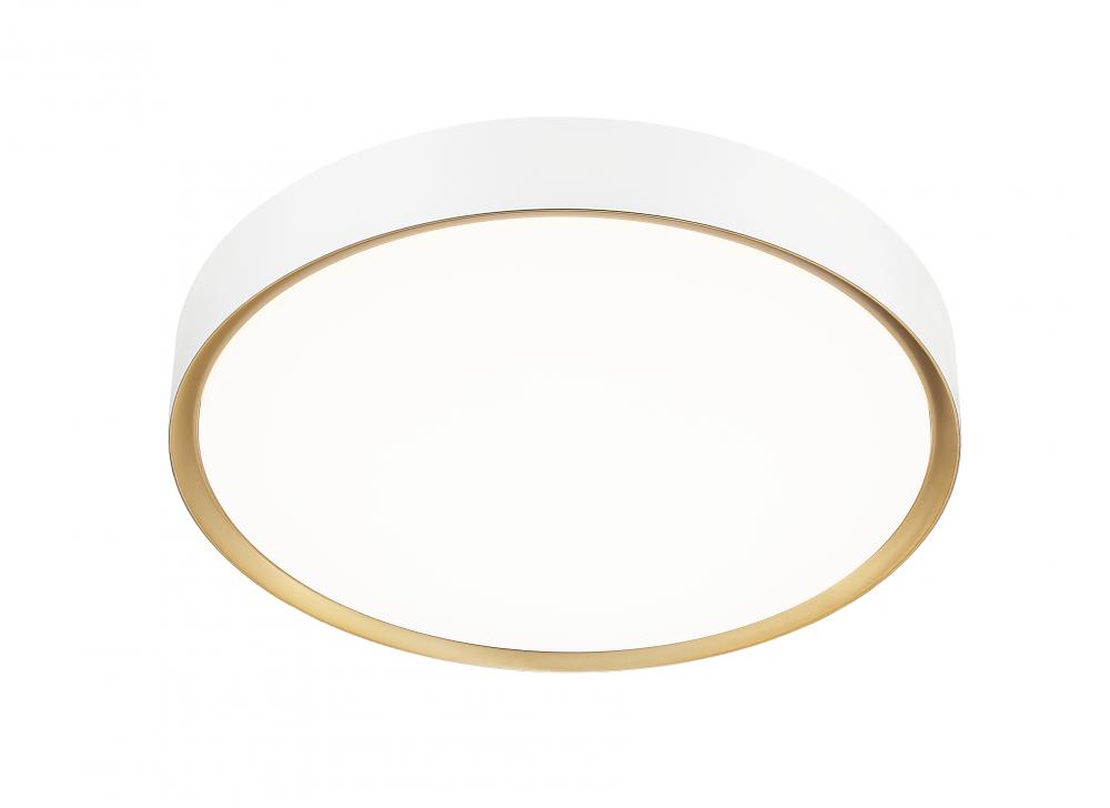 Bring sophisticated lighting to a bedroom or den with this modern one-light flush mount ceiling light. From the Kawan collection, it pairs a steel shade with a two-tone finish in matte white with a modern gold interior, adding wonderful warmth and ambiance to your space. The lamp includes integrated LEDs, ensuring energy efficiency in your modern home.