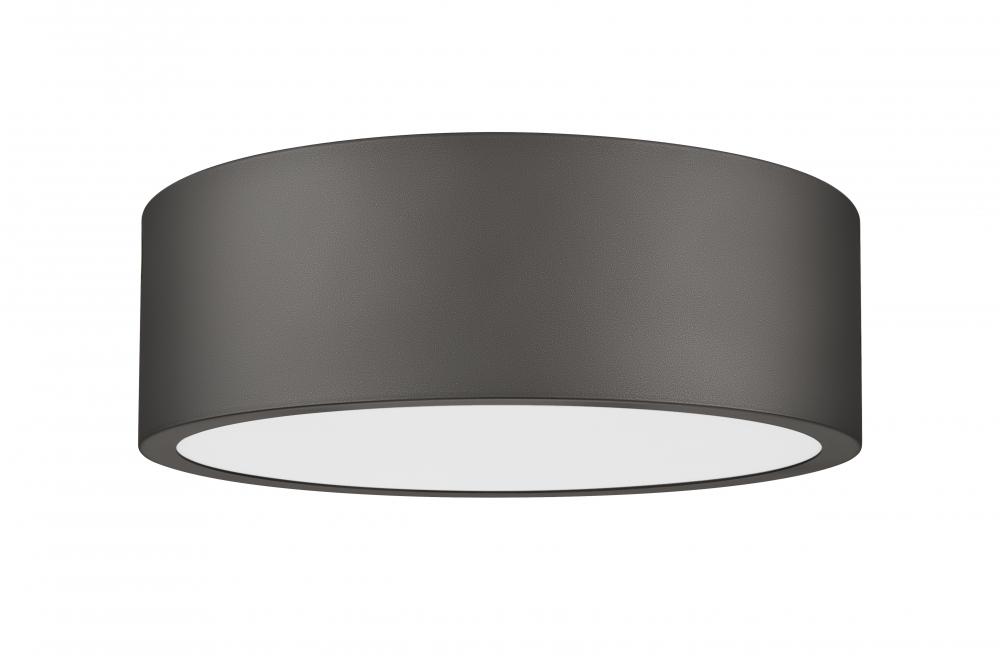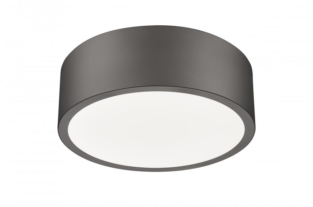 A rich bronze finish adds a hint of sophisticated designer style to the clean lines of a modern round flush mount ceiling light. The round design boasts a bold frame made from aluminum that delivers energy efficient illumination with its integrated LED. A frosted diffuser softens illumination, while color selectability and dimming capabilities add easy control of ambiance in any setting.