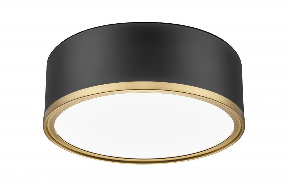 A soft modern gold finish band brings a hint of warm formality to this contemporary round flush mount ceiling light. It includes an integrated LED thats dimmable and offers light color selectability with five settings to create the perfect ambiance in your home. A matte black body finish and frosted diffuser complete the look with polished precision and elegance.