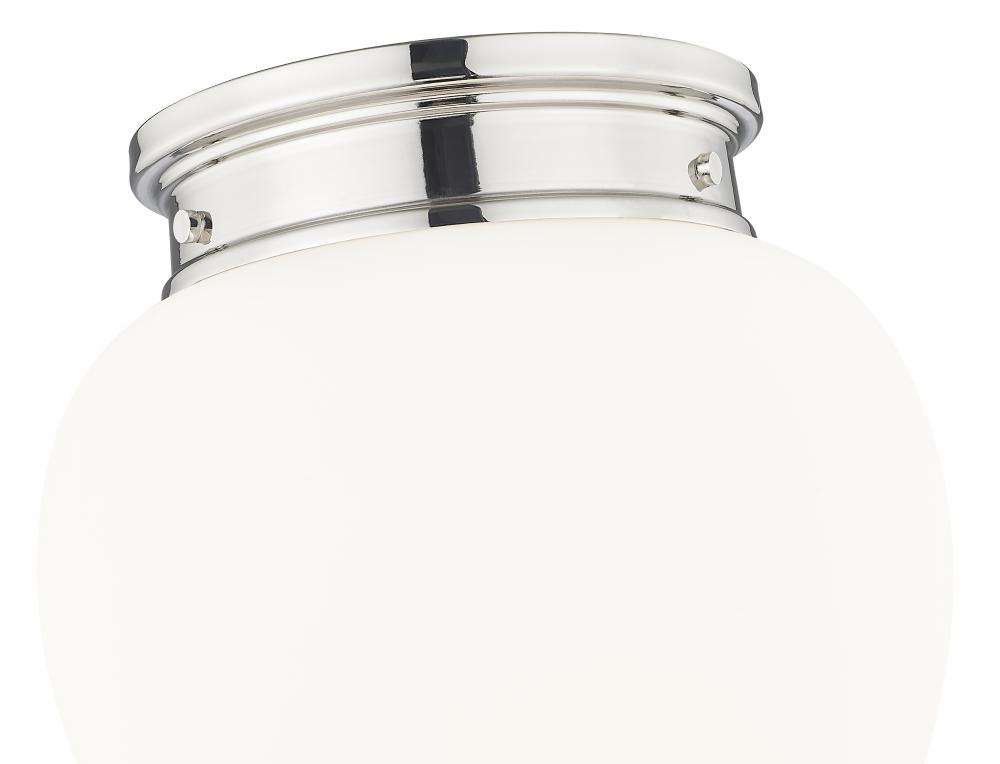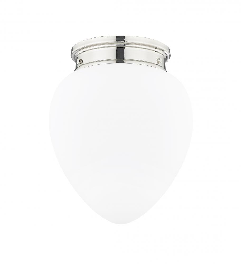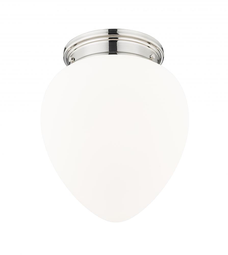 Artisanal craftsmanship harnesses the vintage charm of schoolhouse glass to create a chic silhouette for a modern one-light flush mount ceiling light. A delicately rounded, teardrop-style glass shade is crafted in etched opal glass, delivering timeless elegance that brims with versatility, complementing in casual and more formal living spaces. A polished nickel finish is bright and elegant, complementing surrounding decor with ease.