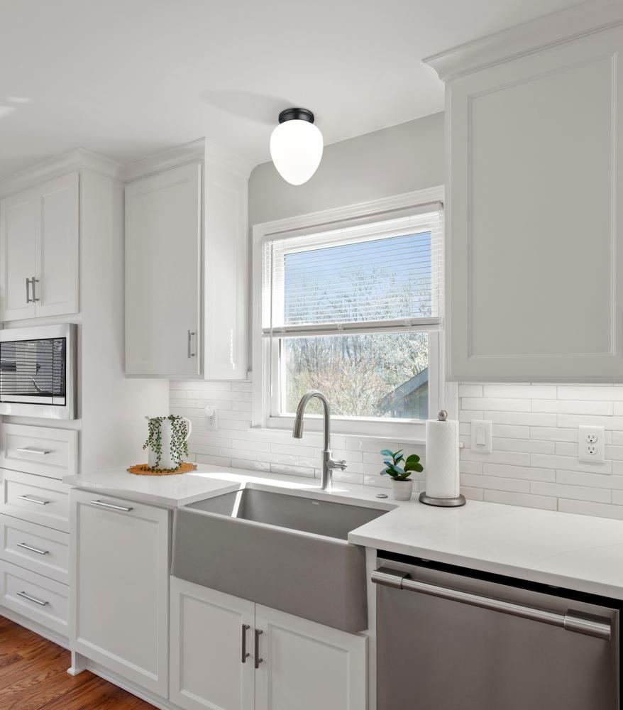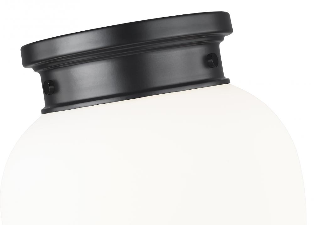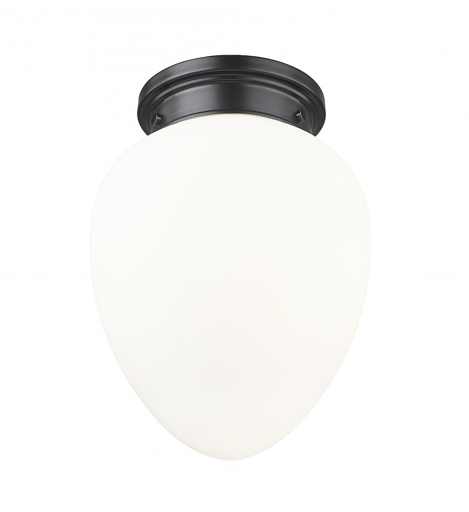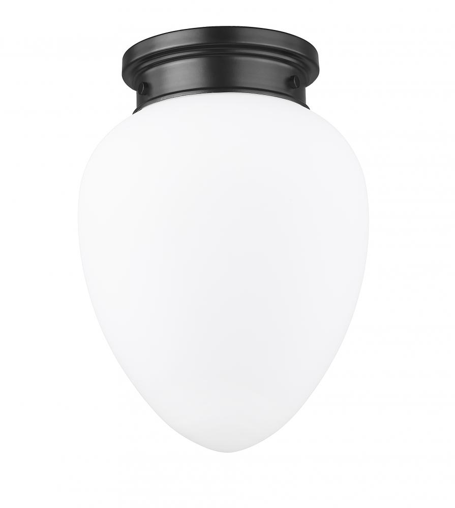 Harness the vintage charm of schoolhouse glass and a chic silhouette in this modern one-light flush mount ceiling light. A delicately rounded, teardrop-style glass shade is crafted in etched opal glass, delivering timeless elegance that brims with versatility, complementing in casual and more formal living spaces. A matte black finish is crisp and elegant, complementing surrounding decor with ease.