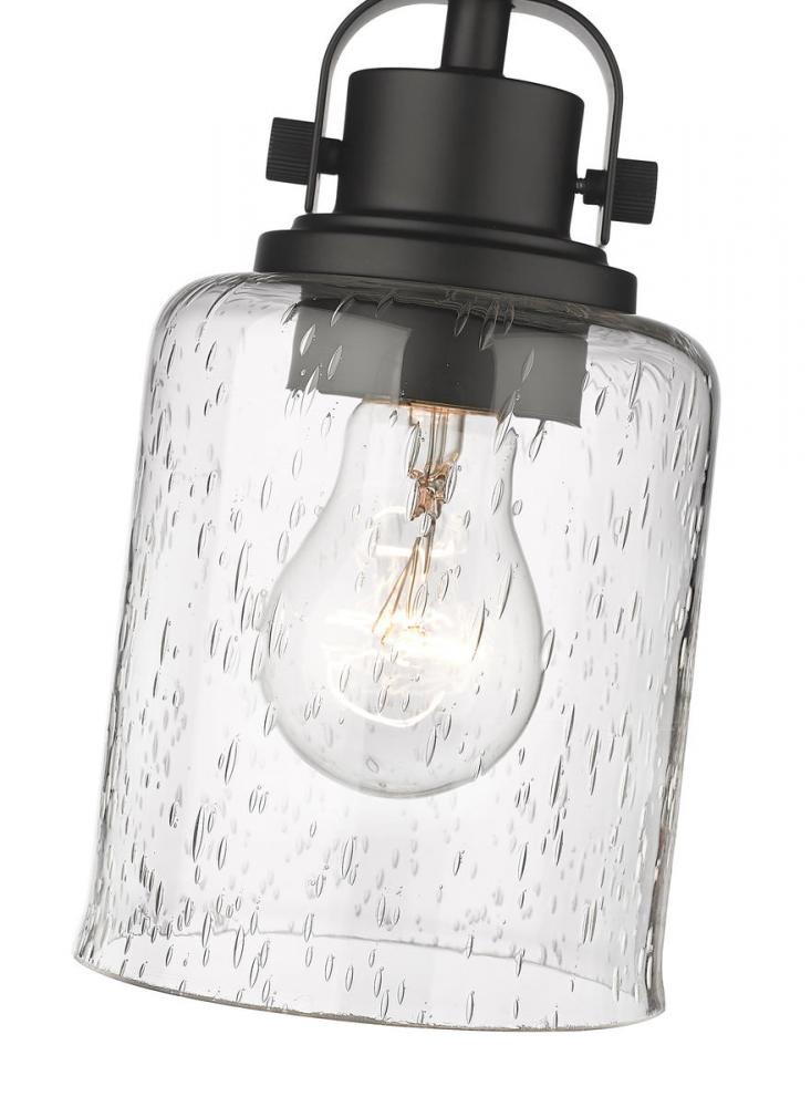 Inspired by the metropolitan lifestyle, this flush mount wall light brings stunning illumination to hallways, bedrooms, home offices and much more. With a seeded glass shade and steel frame in a matte black finish, it provides a beautiful accent to any interior.
