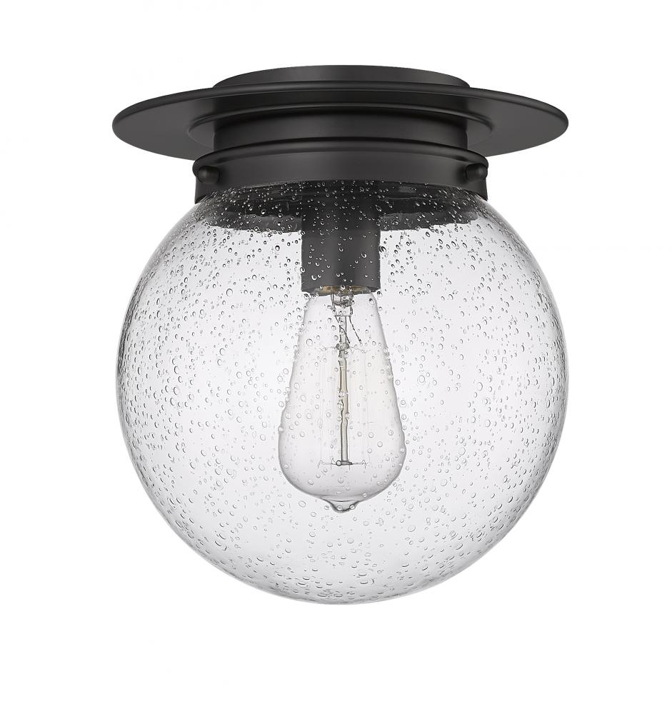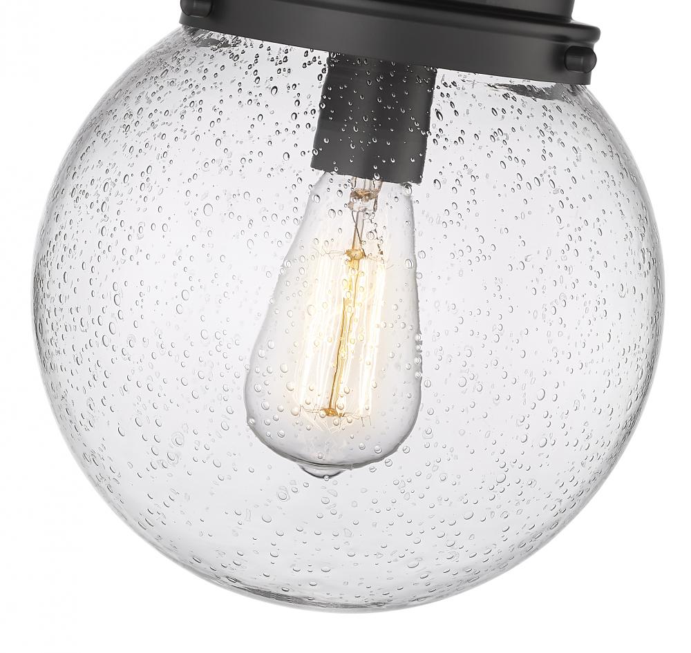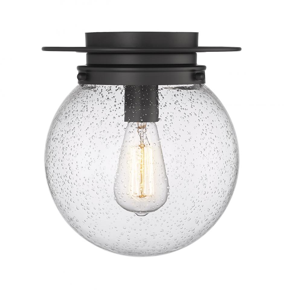 Make a signature statement with the chic style of a light fixture offering a clean aesthetic and charming personality. From the Calhoun collection comes a one-light flush mount mixing the versatility of Mid-Century Modern and schoolhouse genres. With a bold matte black finish metal frame, and a delightful clear seedy glass globe, this fixture sheds ambient lighting in any application.