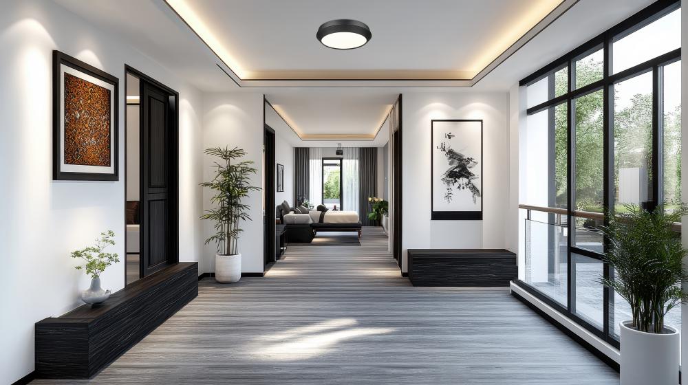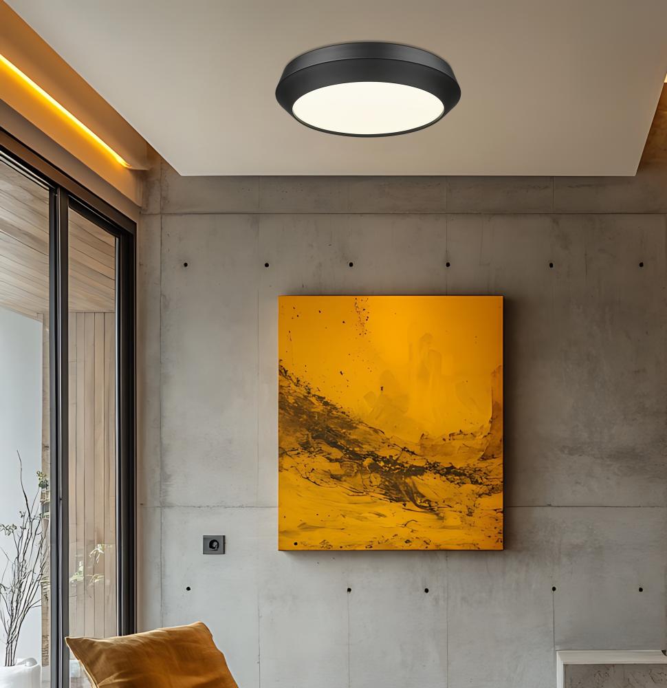 With its deep matte finish and expansive surface of light, this large matte black LED flush mount ceiling light gives modern spaces a confident focal point overhead. The fixture nestles close to the ceiling so even standard-height rooms feel uncluttered, yet it easily brightens bigger gathering spaces like great rooms, bonus rooms, and large bedrooms. Partner it with black cabinet pulls, window frames, or picture frames, and it subtly ties together the room into one cohesive, contemporary scene.