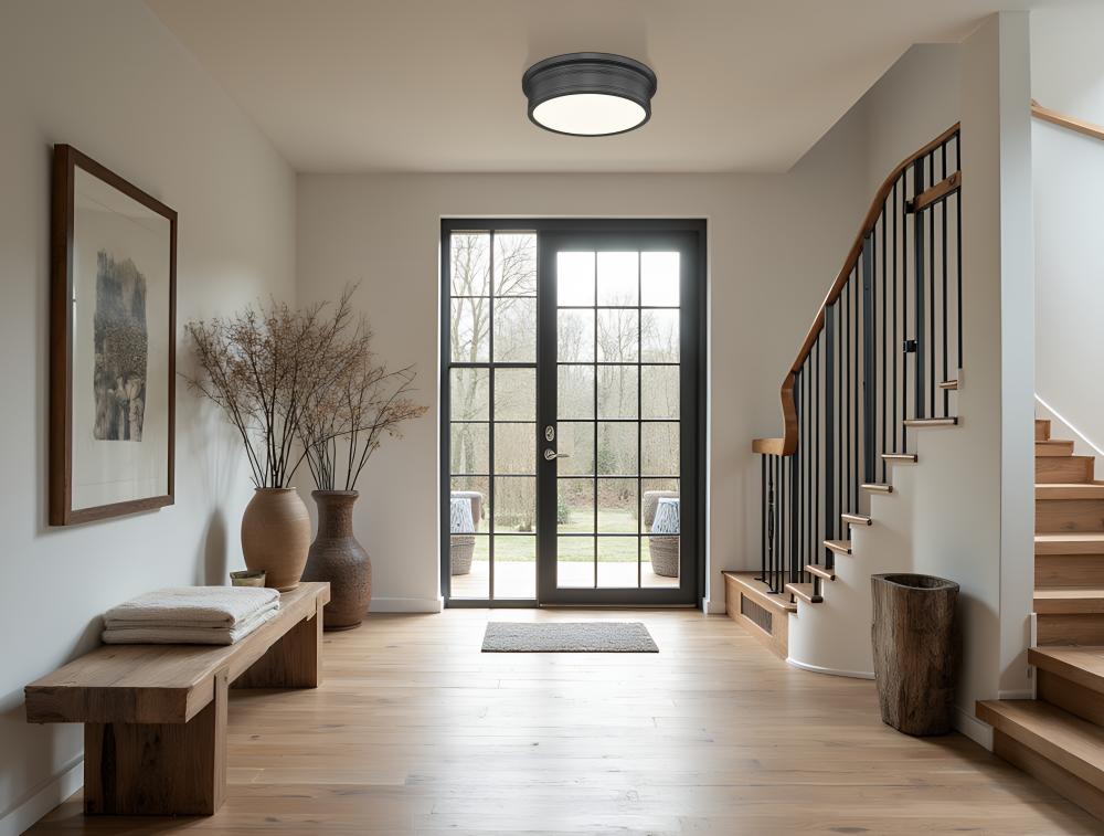 Dark and refined, this matte black transitional LED flush mount ceiling light adds a contemporary edge to traditional trim, giving the ceiling a thoughtfully updated presence. Its ample glow is strong enough to handle larger entries, playrooms, or open hallways, so the entire area feels bright and usable throughout the day.