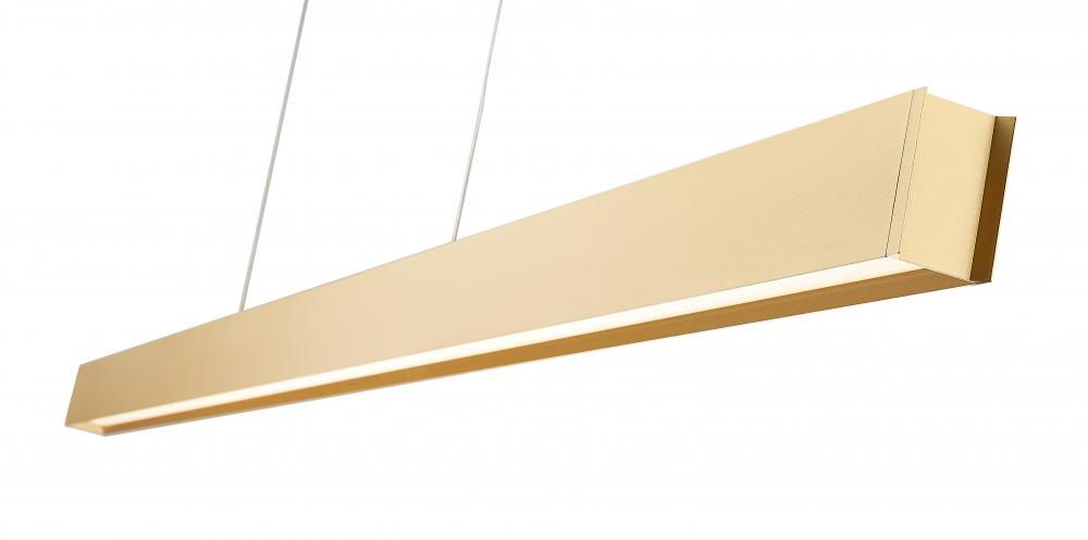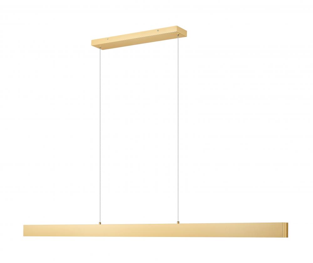 A wide, slender silhouette is perfect for receiving LED lighting as this one-light linear chandelier, simple and yet sophisticated. Keep it easy with lush gold finish metal fashioning an extended shade and diminutive canopy, as energy-saving illumination is both dimmable and selective for color levels.