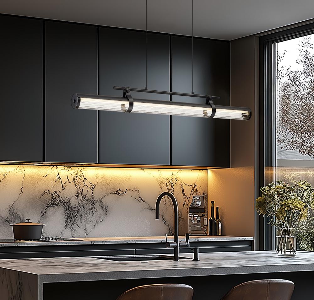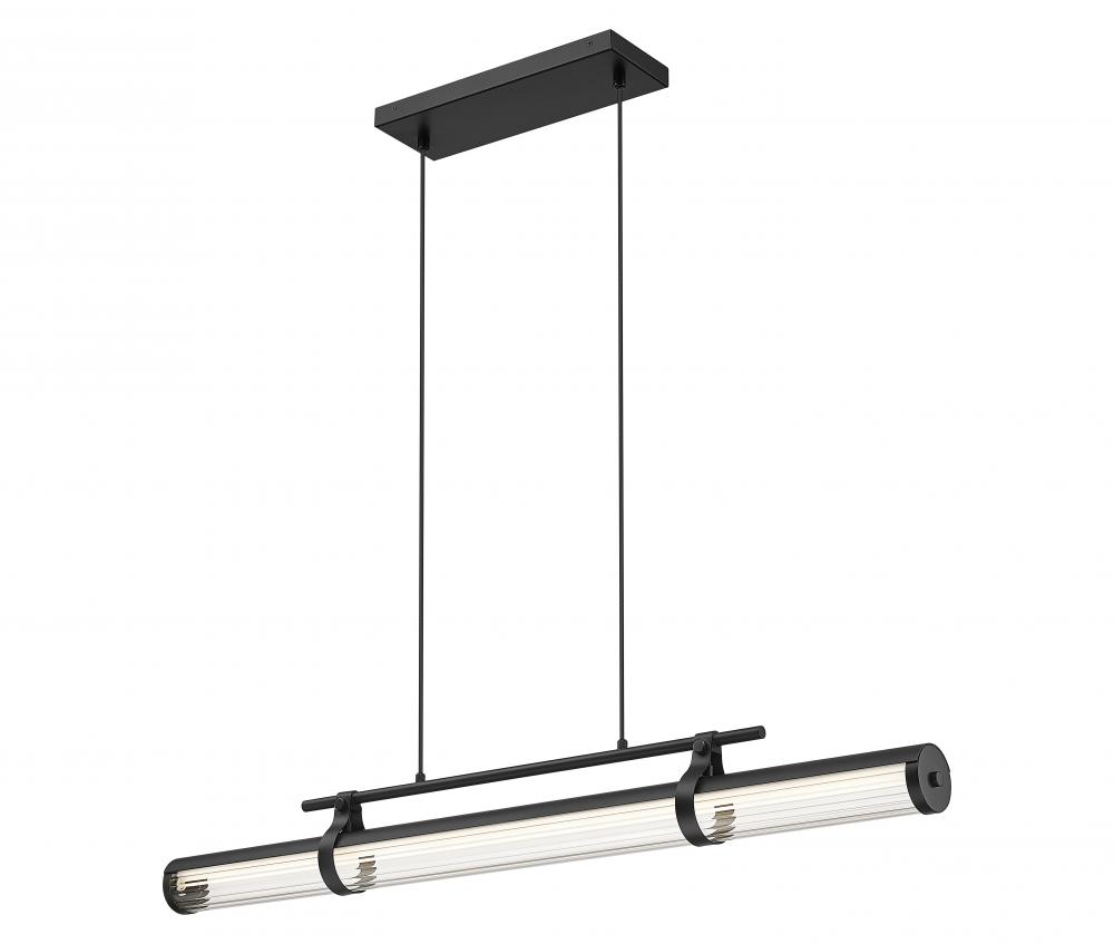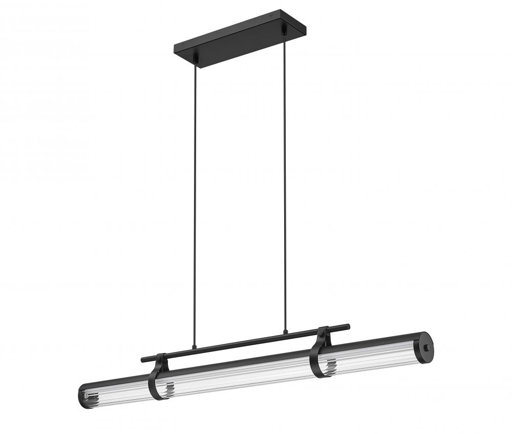 Timeless, with industrial influence, the design of this one-light linear chandelier adds a striking look with personality as it illuminates horizontally oriented settings. Fawn over matte black finish metal framing with extra detail as this cable-suspended fixture sends stylish illumination through a clear reeded glass cylinder shade, rotatable to perfect lighting angles. Dimmable and armed with mood-lifting color level adjustability, this chandelier complements kitchen islands, bar settings, and other settings around interiors.