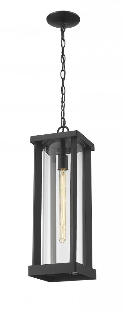 With a modern flair, this outdoor ceiling fixture from the Glenwood collection features a dark black finished frame hung by a drop mount chain. Perfectly suited for a more contemporary style home, this outdoor lighting fixture works nicely hung inside a covered portico or porch entryway. With a tube-like, clear glass cylinder sheathing the bulb and braced between a sleek aluminum lantern, this chain mount ceiling fixture adds a striking, yet humble look to greet you as you enter a space.