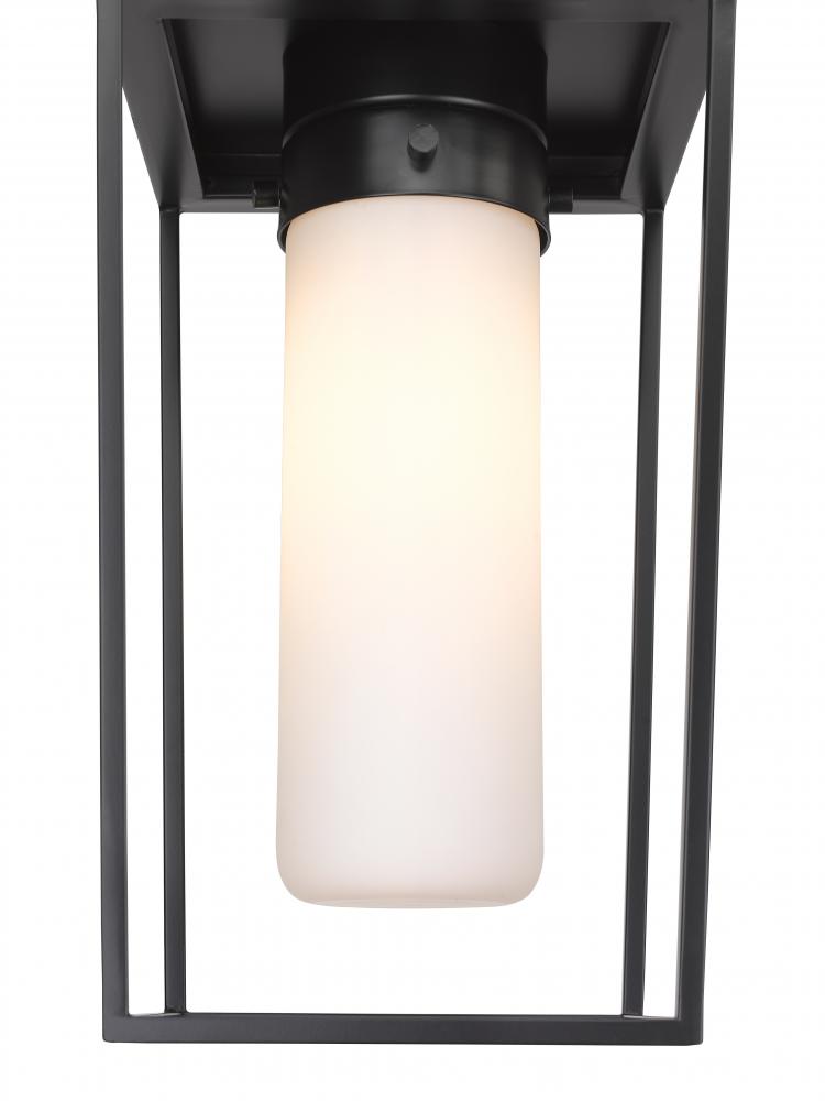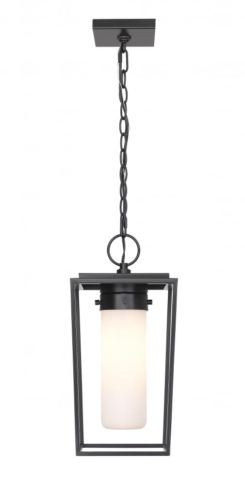 Add a touch of contemporary elegance with a village motif and clean design that embellishes exterior spaces. The Sheridan outdoor chain mount ceiling fixture delivers a simple yet sophisticated aesthetic with an open lantern-style frame made of black finish steel. A cylinder shade crafted of chic white opal glass adds a heady finishing touch.