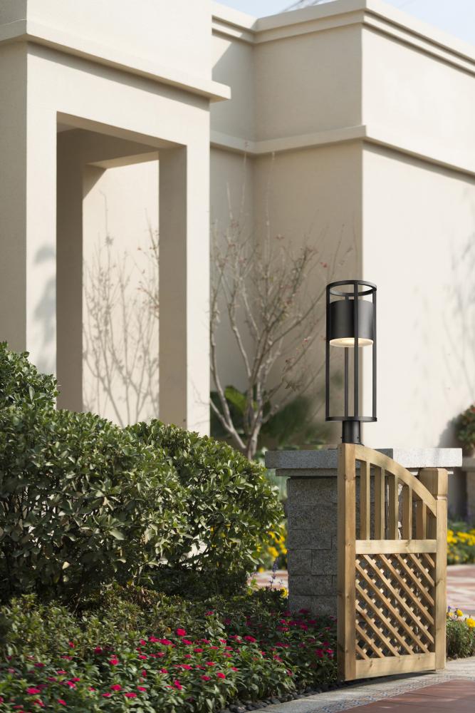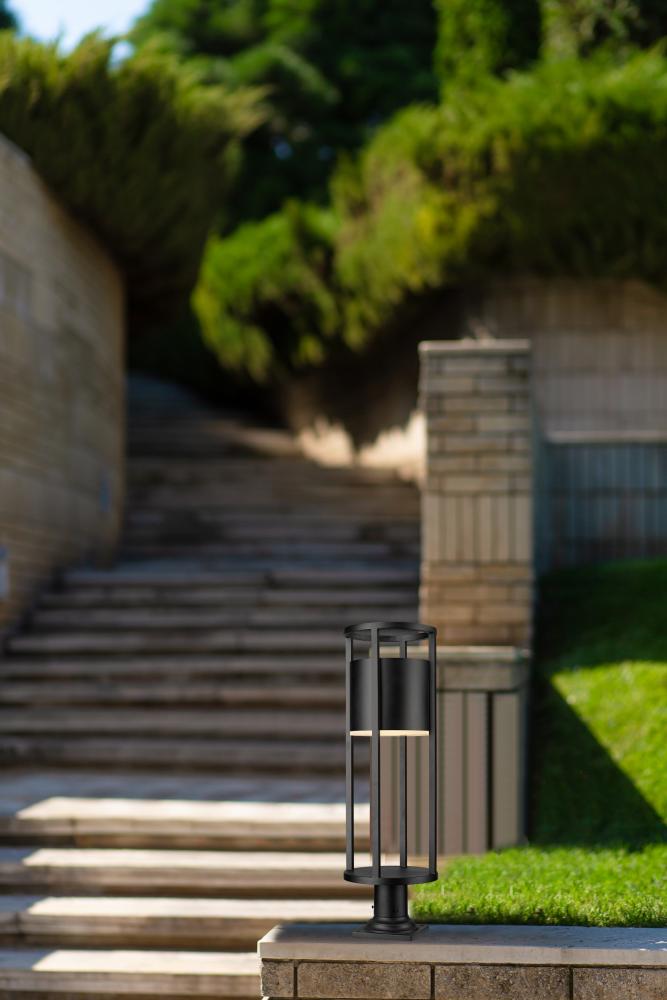 Add a design-forward look of geometry and art in one to a landscaped space or walkway. This one-light outdoor pier mounted fixture from the Luca series offers an openwork cylinder frame featuring black aluminum with an etched glass diffuser. LED lighting offers energy efficiency to embellish its value.